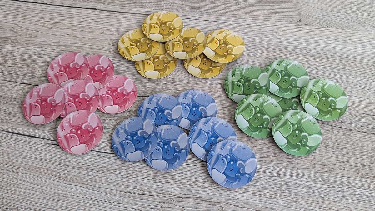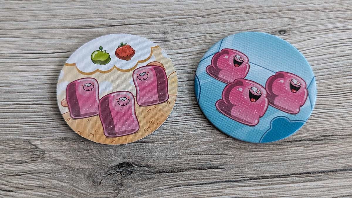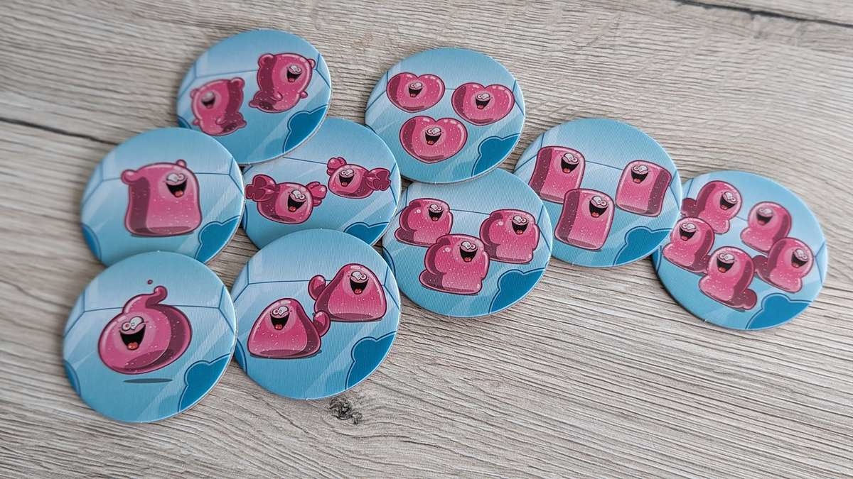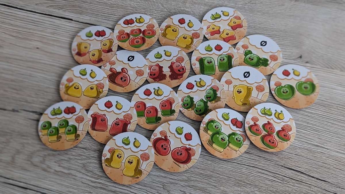 Bei den Jüngeren am Tisch kam es in unseren Partien mitunter vor, dass die Zuckerdosen leicht verrutschten. Dadurch mussten die herausschauenden Plättchen des Öfteren wieder zurückgeschoben werden. Deutlich vermindern konnten wir dies durch den Einsatz einer Spielmatte auf dem Tisch. Somit kein großes Problem für mich. Ein für die Kinder sehr besonderer Aspekt sind die freizuschaltenden neuen Plättchen. Diese nach Früchten (Ananas, Orangen, Brombeeren) sortierten exotischen Gumminis bringen neue und interessante Aktionsmöglichkeiten ins Spiel. So können nun unter anderem Gumminis kopiert oder die Auslage der anderen Kinder beeinflusst werden. Da dies stets in einem überschaubaren Rahmen bleibt, fördert dies den Spielspaß in hohem Maße, ohne unnötige Frustration zu wecken.