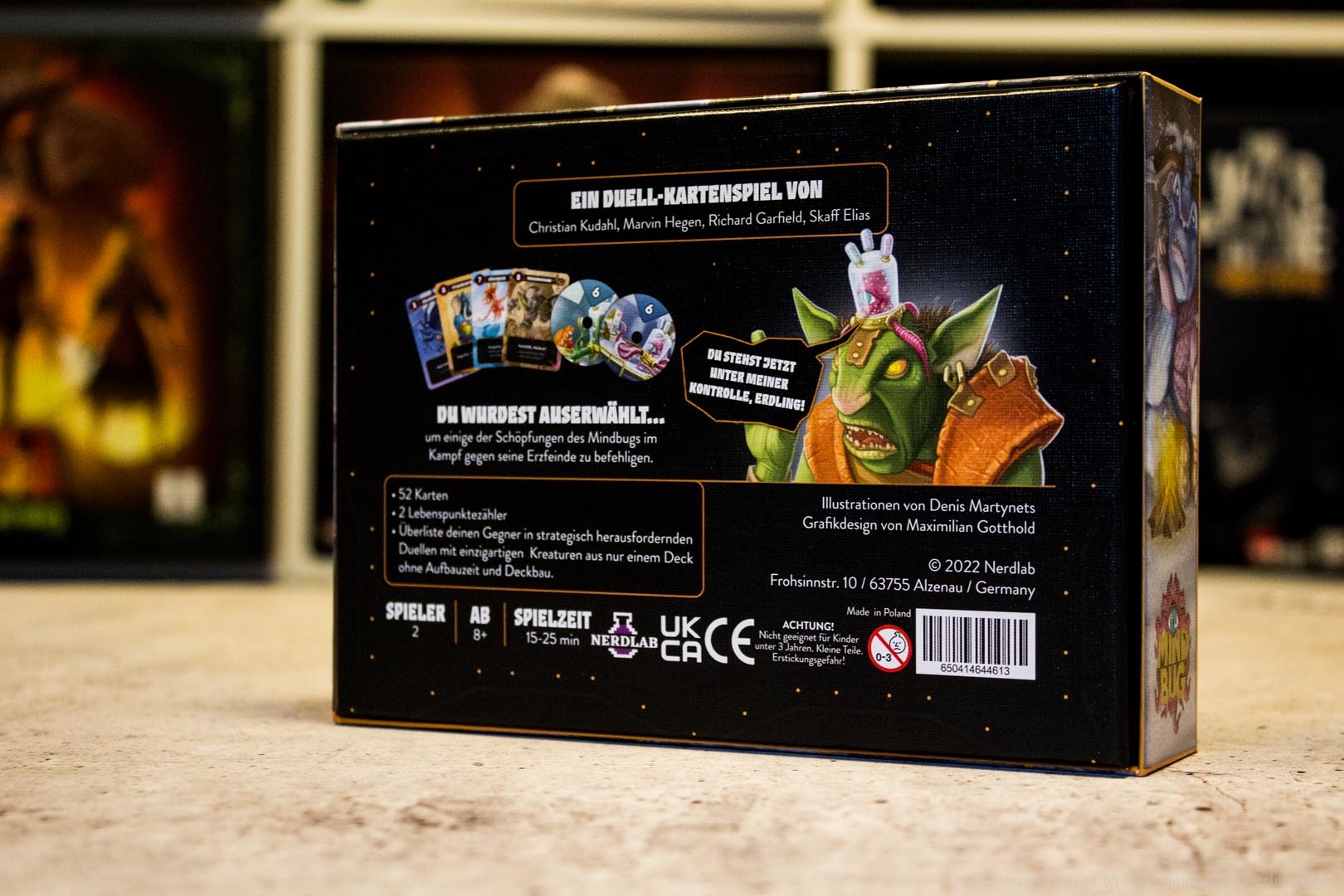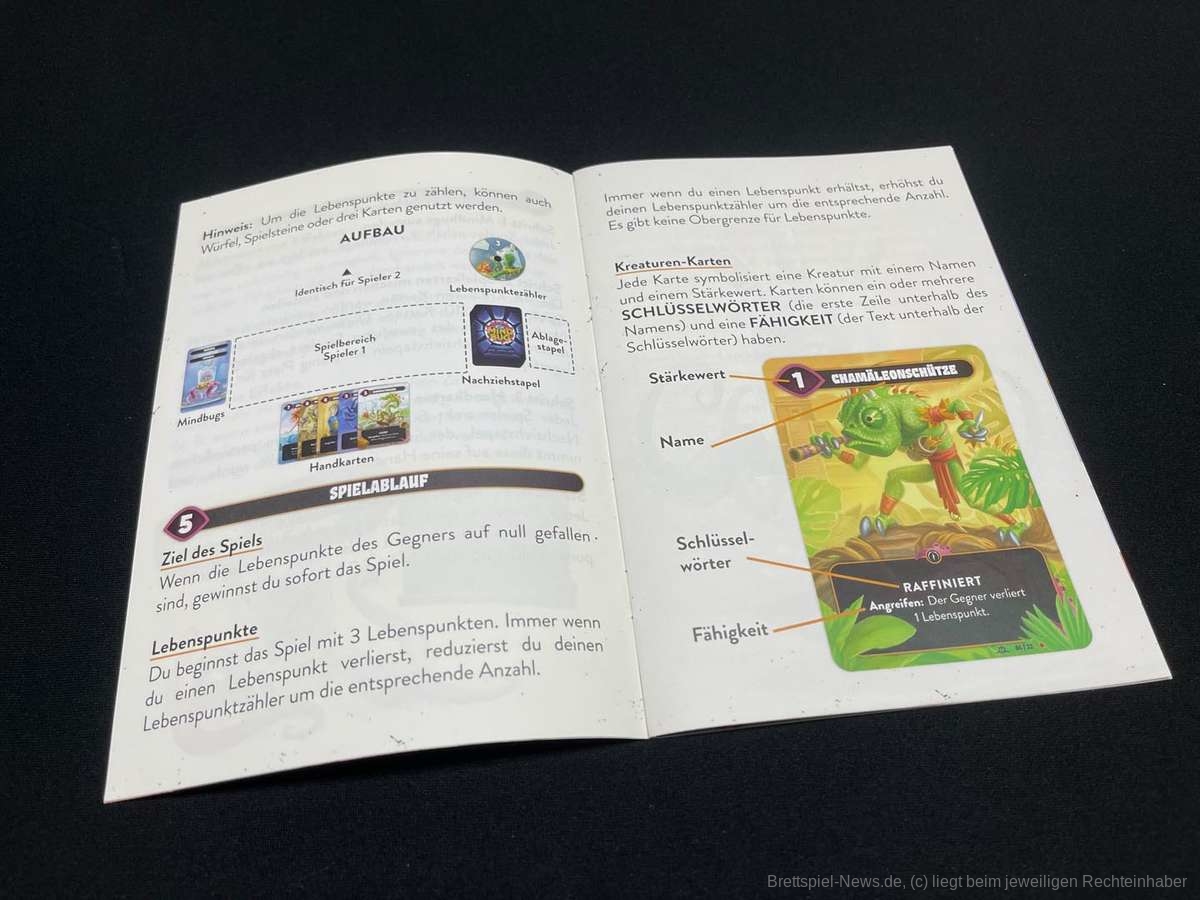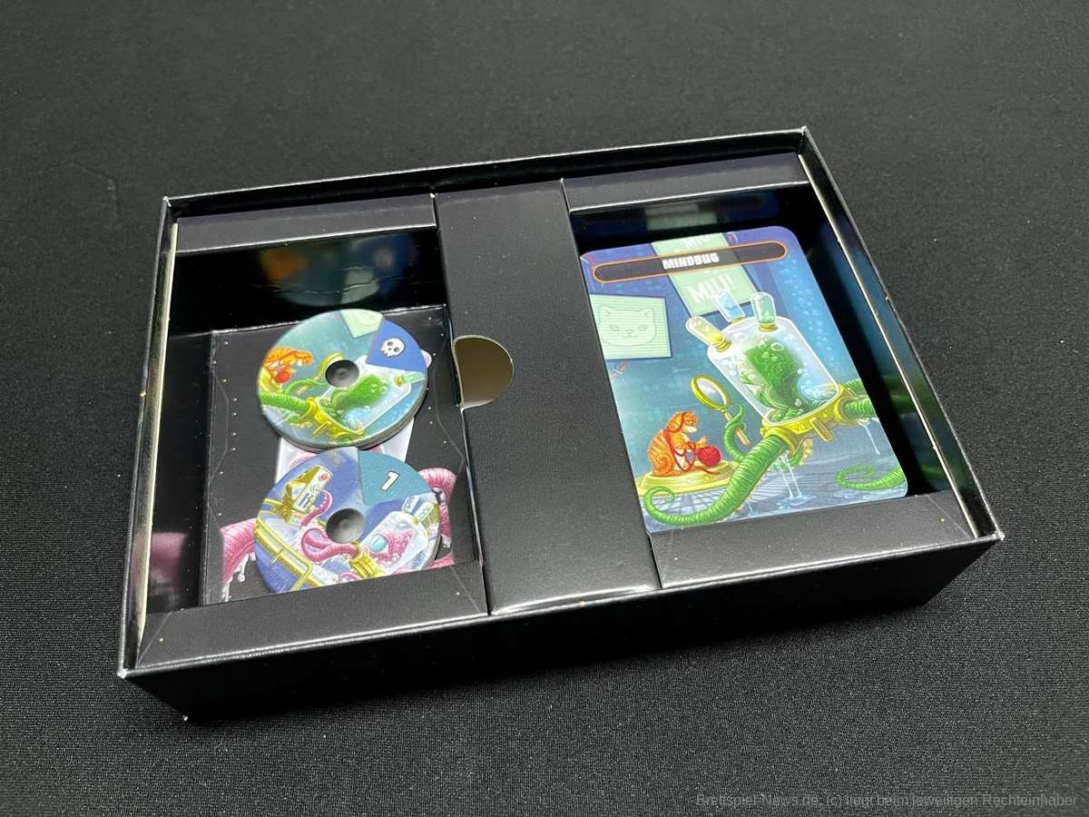 Wie die Spielbeschreibung schon andeutet, ist "Mindbug" kein ausuferndes Spiel mit verschiedensten Spielkomponenten und stundenlanger Spielzeit. "Mindbug" ist in jeder Hinsicht klein und elegant und schafft es, mit 48 Karten herausfordernde Duelle zu erleben.