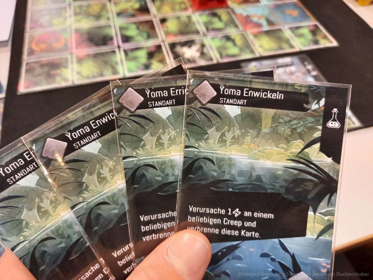 Wenn starke Creeps besiegt werden, gibt es für alle Kristalle, die am Ende jeder Runde ausgegeben werden können, um neue Karte für das eigene Deck zu kaufen. Aber nicht nur die Decks der Spielerinnen und Spieler wachsen. Jede Welle mit Creeps ist schwerer zu besiegen als die vorherige.