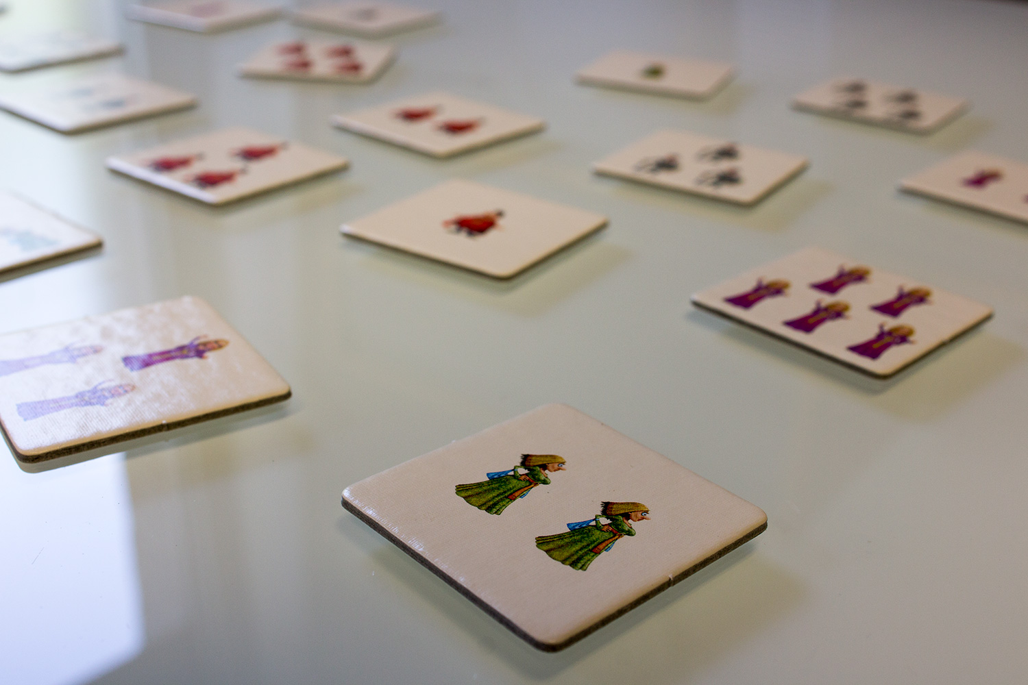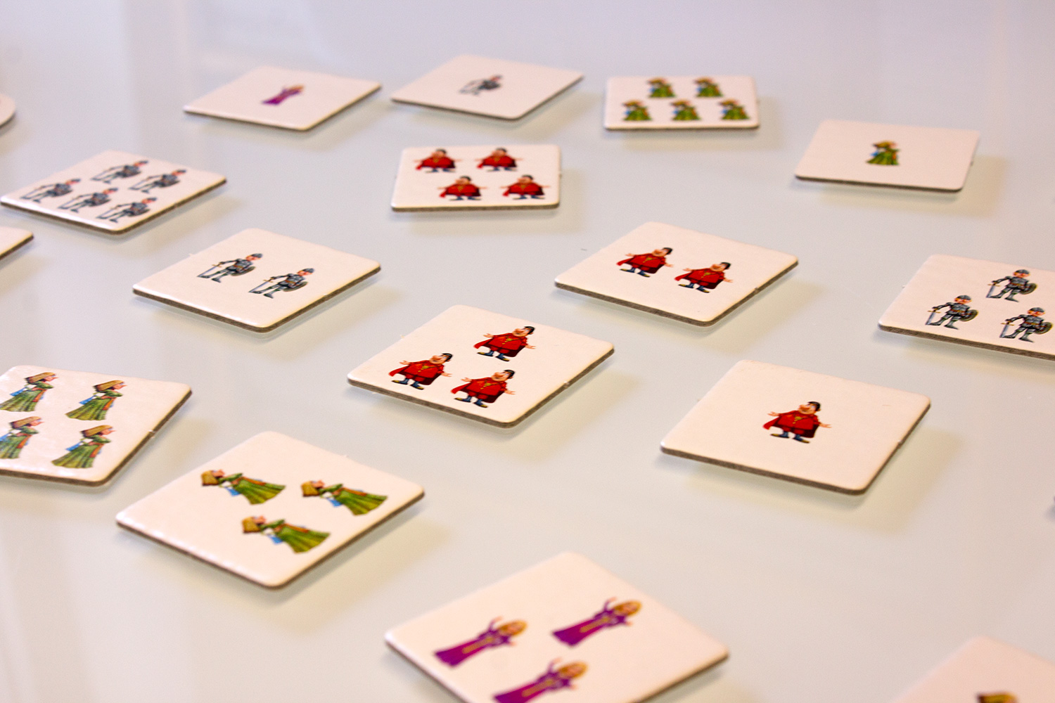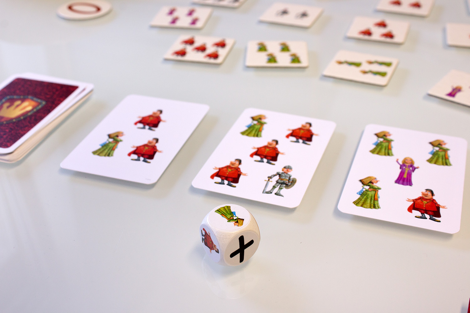 22 Lösungskärtchen werden auf dem Tisch ausgelegt. Jeder Spieler muss diese und die vier Spielfiguren schnell erreichen können. Nun würfelt ein Spieler den Spielwürfel. Dieser zeigt entweder eine der Spielfiguren, ein Plus oder ein Minus. Nun gilt es von den 18 Aufgabenkarten drei Karten schnell aufzudecken. Je nach Würfelwurf müssen nun entweder entsprechend der Spielfigur die Anzahl in den drei Karten erfasst werden und das entsprechende Lösungsplättchen genommen werden. Bei einem „Plus“ muss die höchste Anzahl von Figuren gezählt und entsprechend bei einem „Minus“ die geringste Anzahl. Sollte ein Charakter keinmal oder mehr als sechsmal vorhanden sein, muss das entsprechende Plättchen genommen werden. Anschließend noch den entsprechenden Charakter. Manchmal gibt es mehrere richtige Lösungen. Dann können mehrere Spieler Punkte machen.