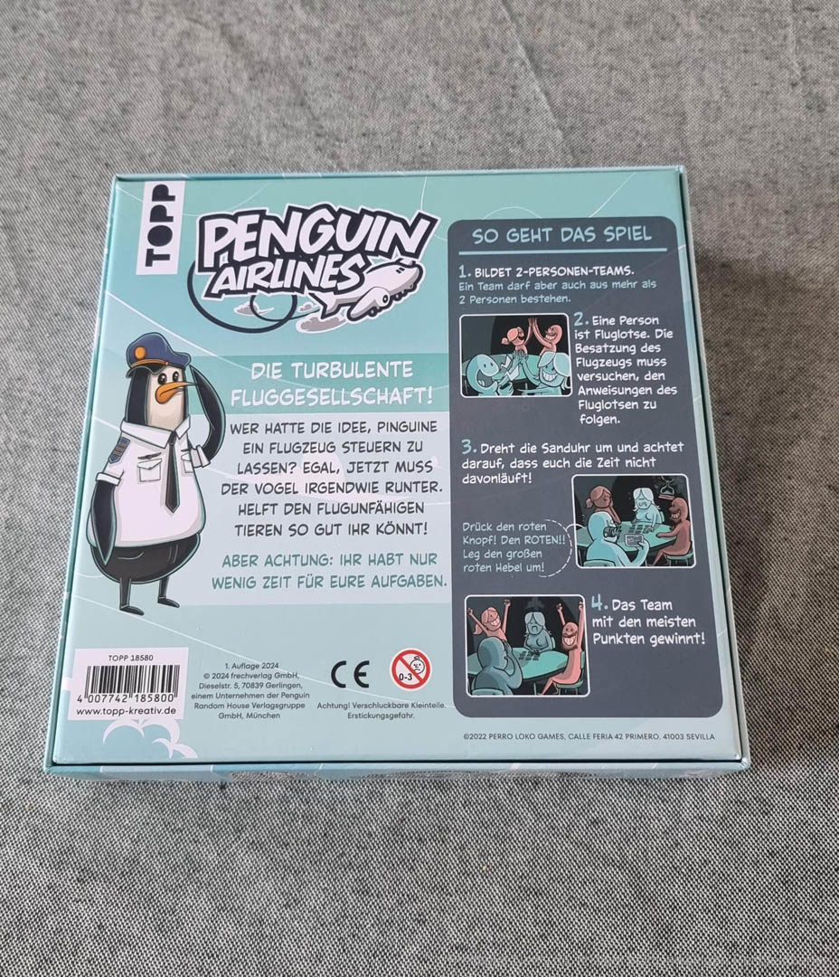 Das Spielprinzip von „Penguin Airlines“ ist nicht neu, macht seine Sache aber sehr gut. Genaue und prägnante Beschreibungen führen zum Ziel, sofern die Crew auf die Details achtet. Gepaart mit dem Zeitdruck wird aus jeder Partie eine spannende Angelegenheit. Ganz persönlich bevorzuge ich allerdings die App. Sie ist einfach in der Bedienung und macht das Umkehren des Timers leichter und sekundengenau. Häufig bedient das gegnerische Team die App, damit sich das aktive Team voll auf den Flug konzentrieren kann.