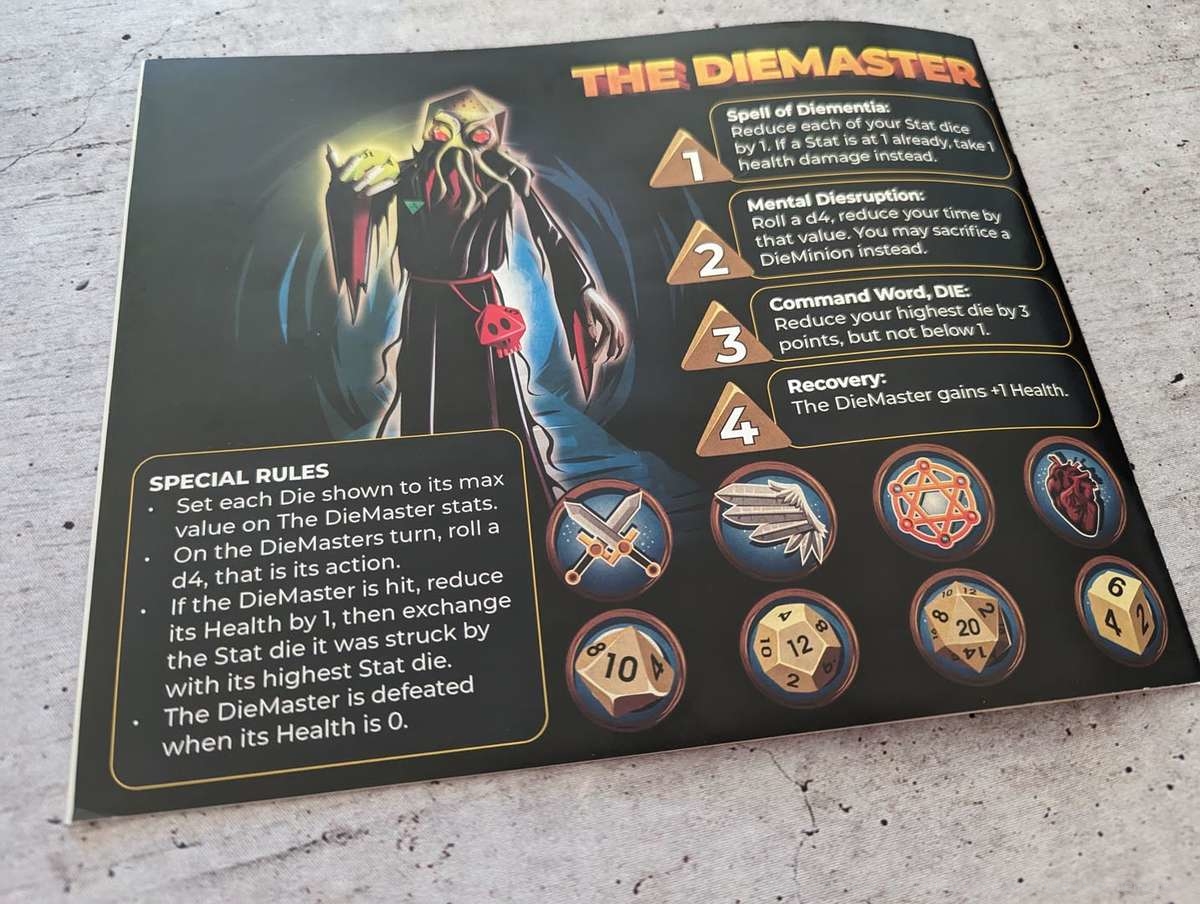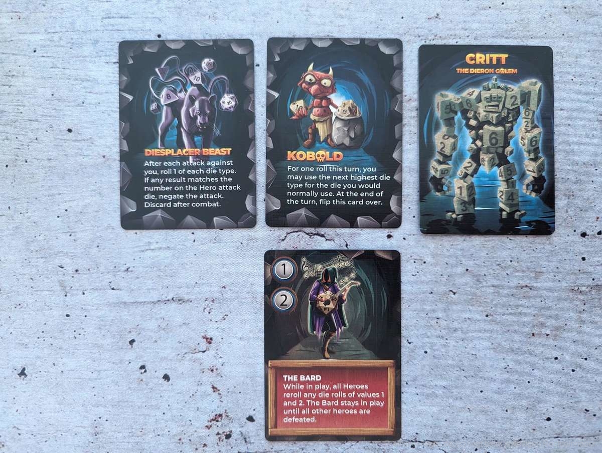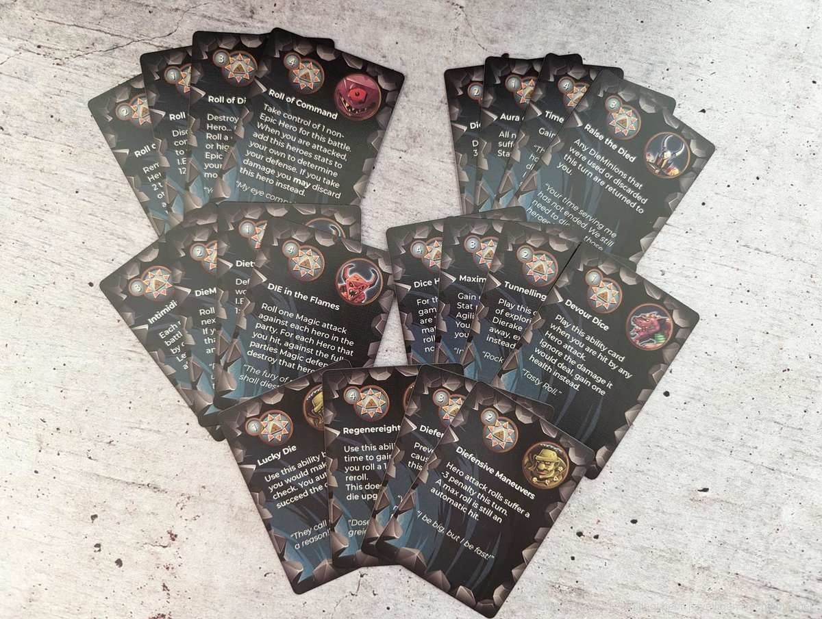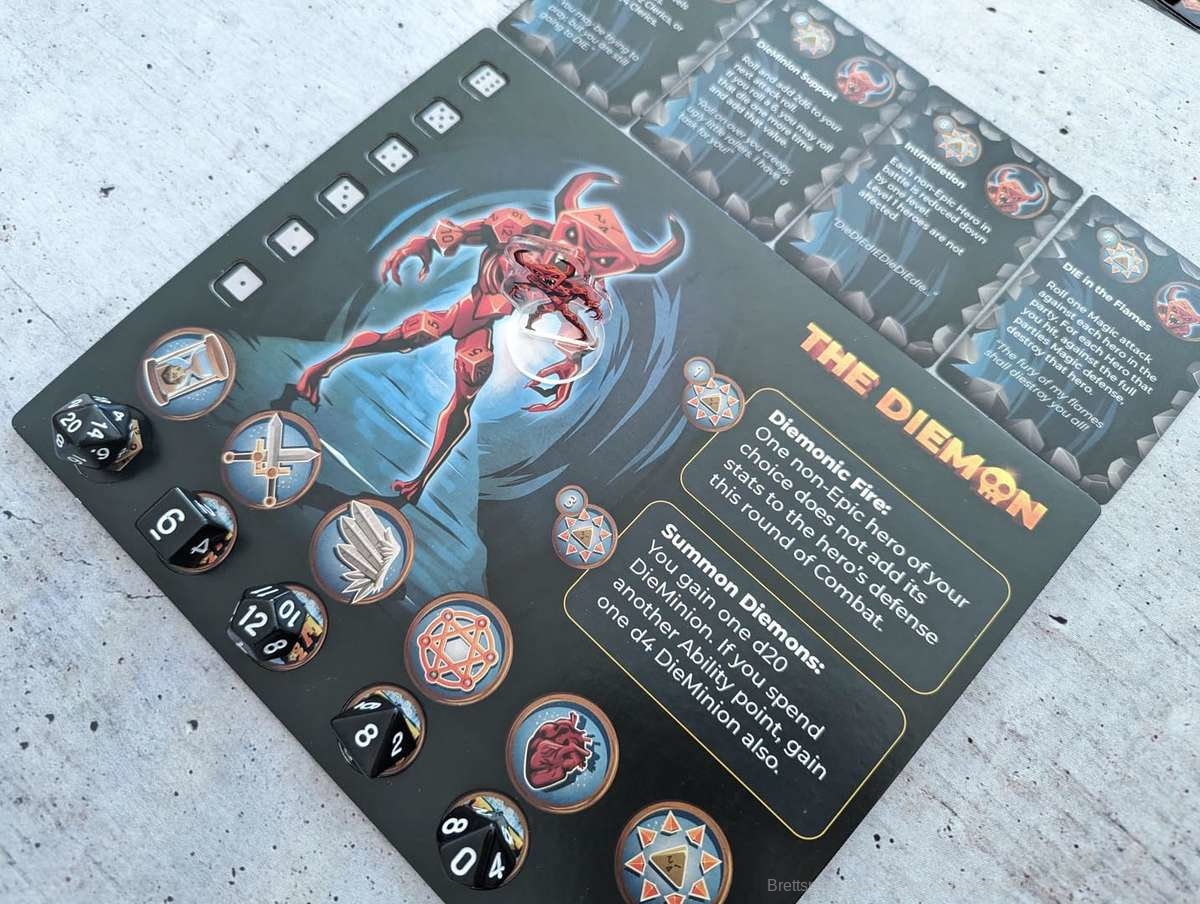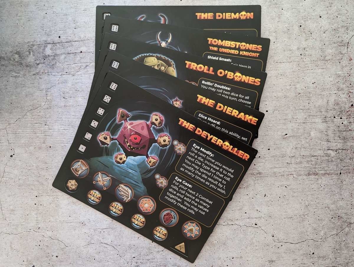 Die einzelnen Fähigkeiten der Monster sind aber durchaus hilfreich und passen zum jeweiligen Monster. Auch in die einzelnen Bezeichnungen der Token, Würfel, Fähigkeiten und Monster wurde vermutlich einiges an Hirnschmalz gesteckt. Denn wo möglich liefern sie irgendwelche Wortwitze mit ‚Die‘ (dt. Würfel), was mir immer wieder einen Schmunzler entlockte.