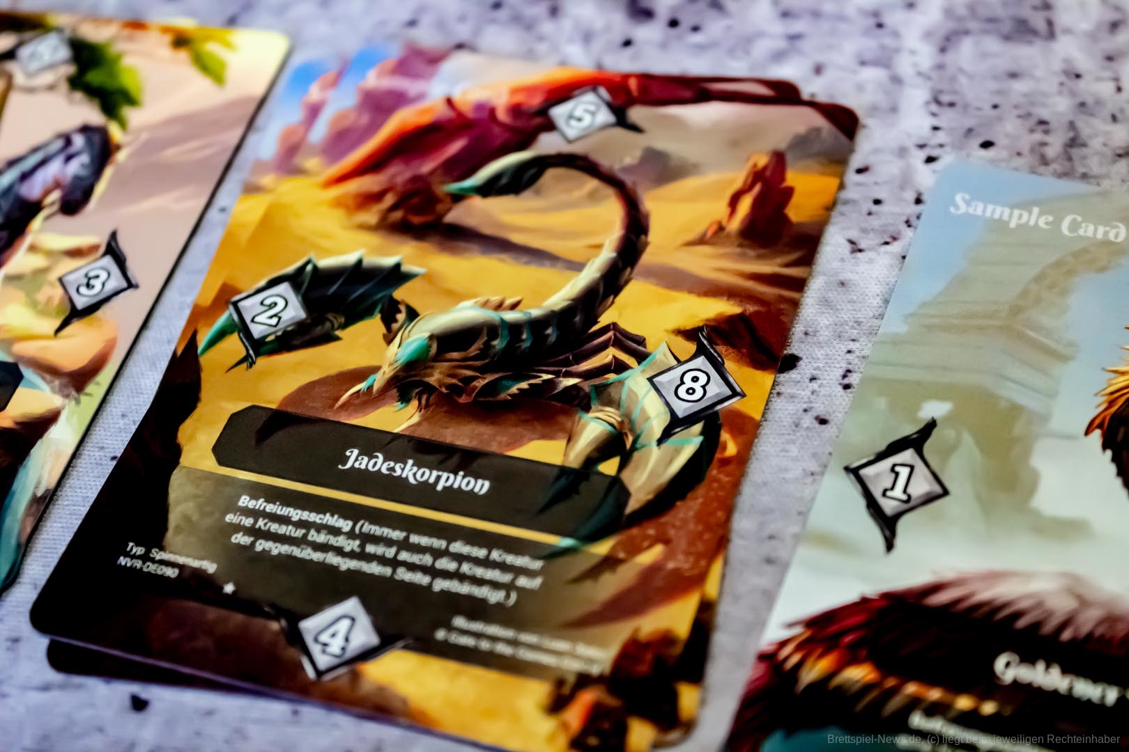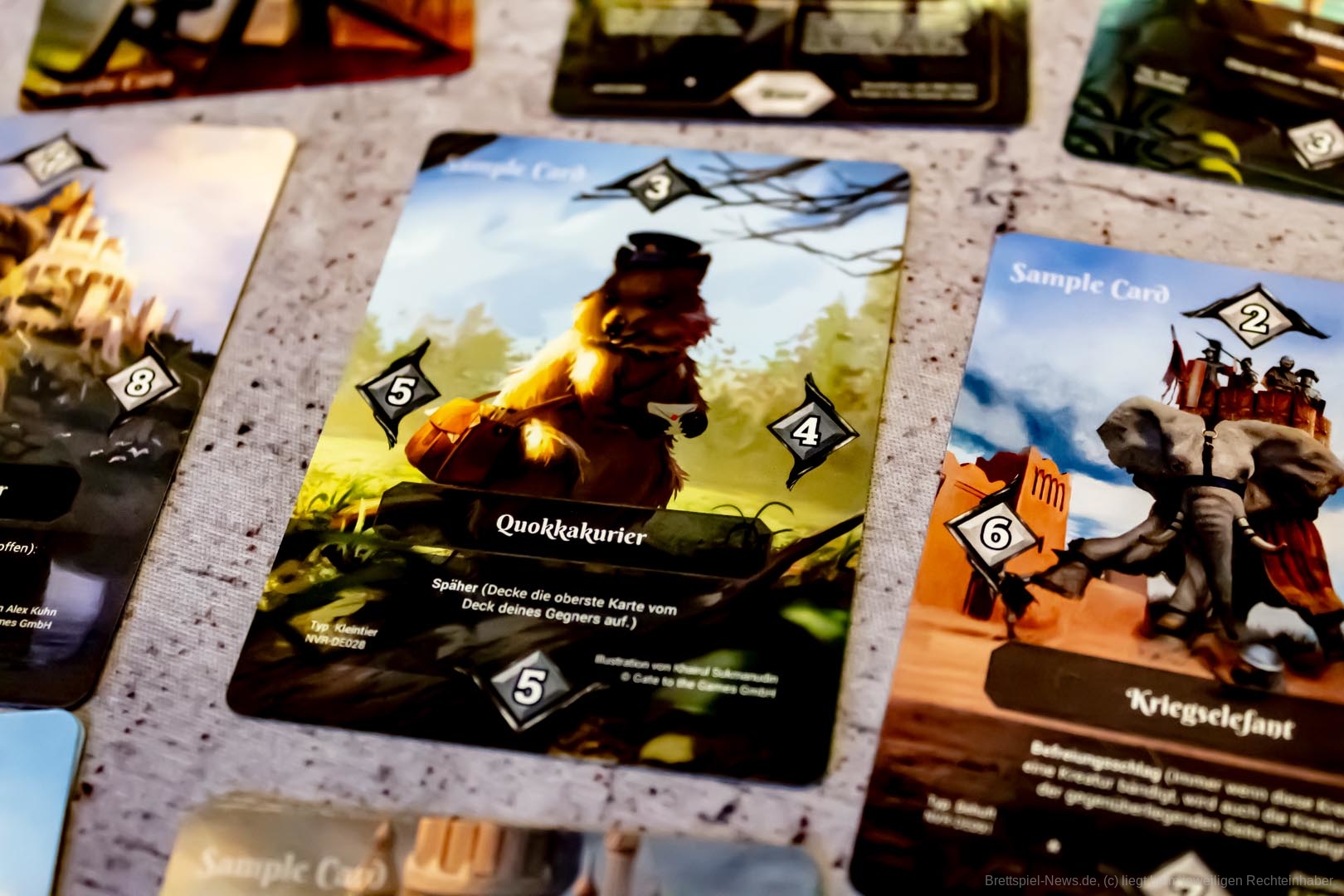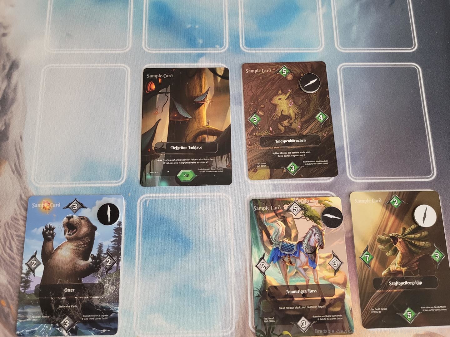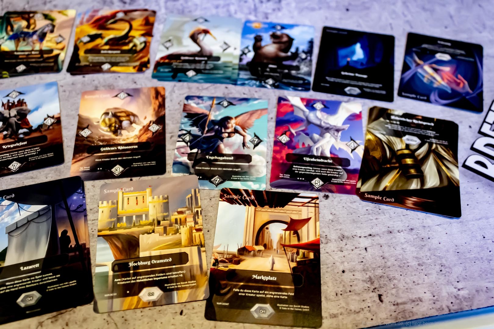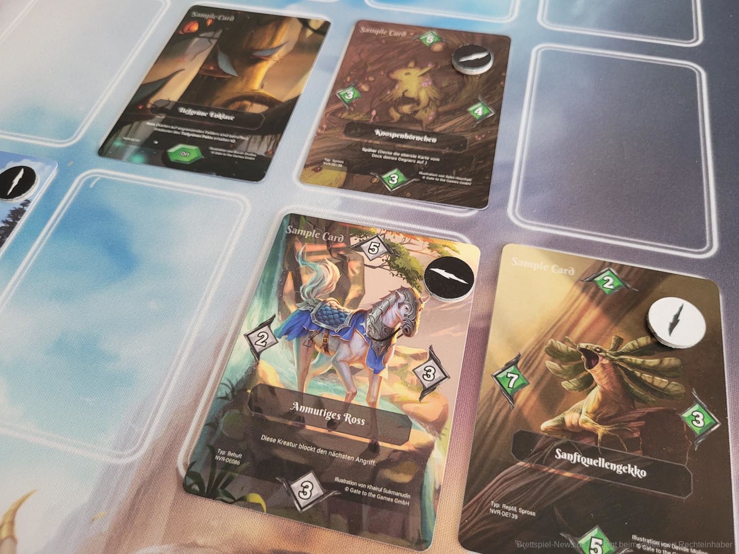 Was ich jedoch bereits mit volller Überzeugung sagen kann ist, dass sich das Spiel sehr gut spielen lässt. Es ist wesentlich einsteigerfreundlicher als „Magic“ und bietet trotzdem eine hohe taktische Tiefe. Das Platzieren der Karten bleibt durchgehend spannend und die 5 verschiedenen Fraktionen spielen sich alle sehr unterschiedlich. Das Balancing hat in meinen Testpartien gut funktioniert. Einige Karteneffekte müssen noch präziser beschrieben werden, aber ich bin mir sicher, dass dies noch im Entwicklungsprozess angepasst wird.