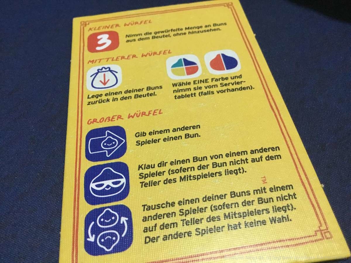 Das Büffet ist eröffnet und bietet lauter leckere kleine gefüllte Teigbällchen. Zwischen den verschiedenen Sorten fällt es schwer, sich zu entscheiden. Doch zum Glück lässt man dazu einfach die Würfel rollen und teilt sich das Ergebnis mit seinen Sitznachbarn. Hauptsache, man erwischt nicht die stinkigen Fischbällchen in „Nice Buns“.