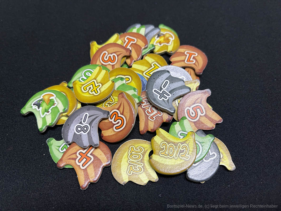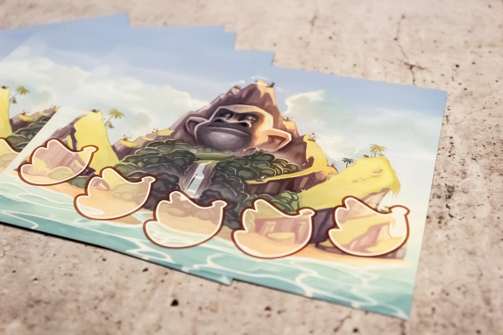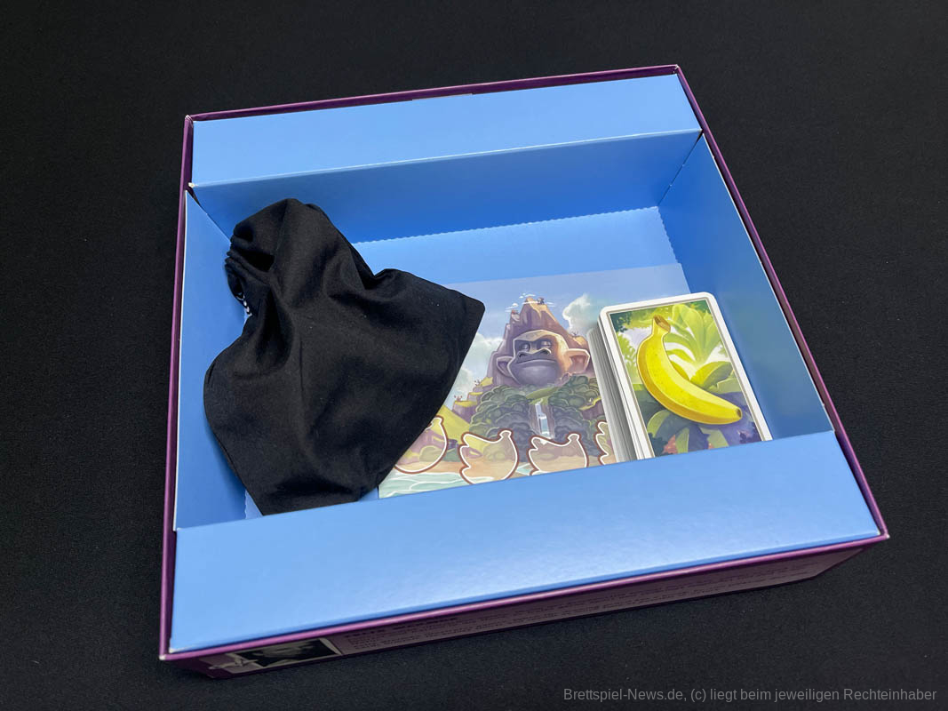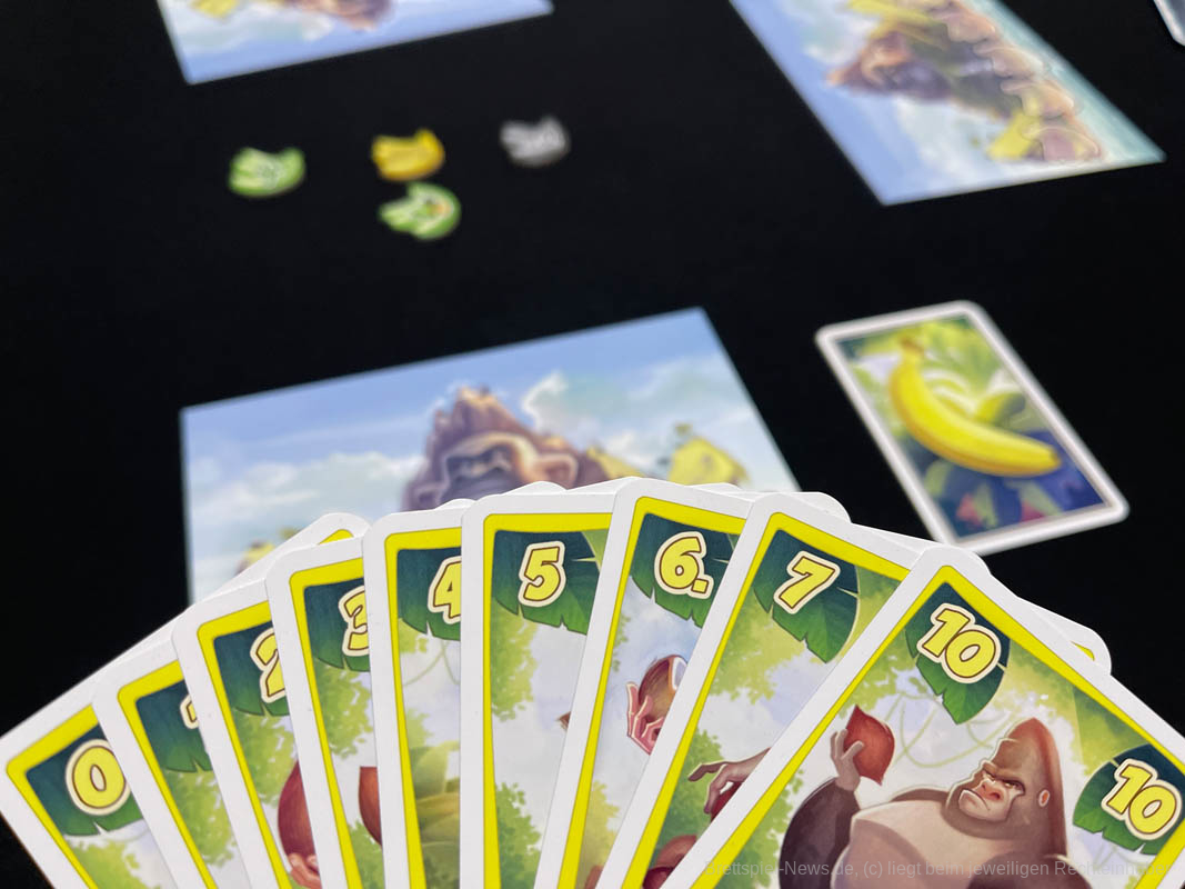 Das Thema finde ich passend zum Spielmechanismus gewählt. Man hat sofort einen Zeichentrickfilm im Kopf, wie sich die Affen um die Bananen streiten. Und wenn es donnert, trauen sich nur wenige Affen aus ihrem Versteck, um sich die Beute zu schnappen. Und dann das stolze Grinsen, wenn man die Beute in den Händen hält und sie Sekunden später von einem Papagei einfach weggeschnappt wird.