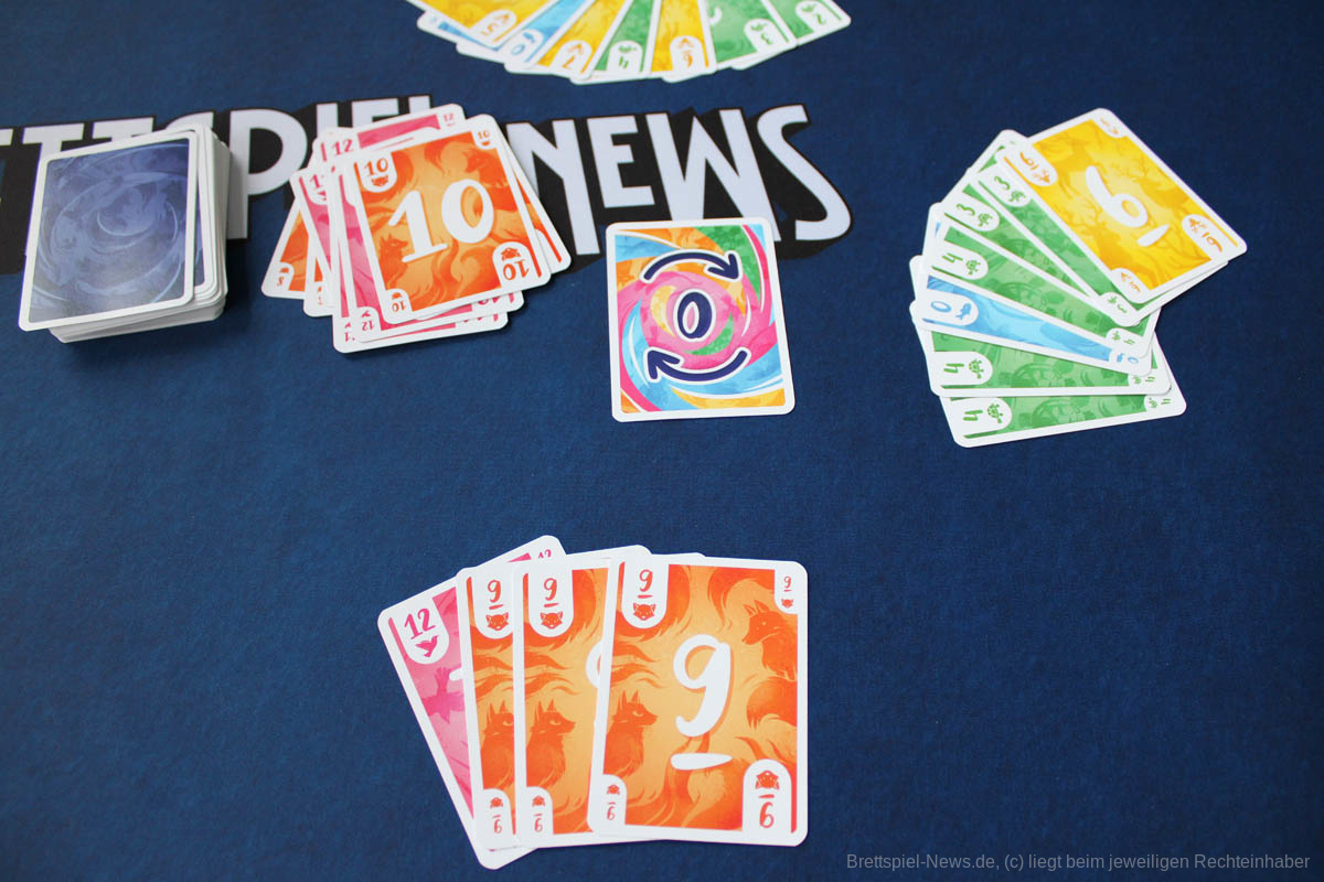 Es spielt sich locker runter und kann jeder Person in fünf Minuten beigebracht werden. Zu zweit war es leider eine Enttäuschung, aber da kommt die Variante mit den zwei Ablagestapeln zur Hilfe. Mit dieser Abwandlung kann das Spiel auch zu zweit sehr gut gespielt werden und bietet gleichzeitig etwas mehr taktische Tiefe. Etwas mehr. Es bleibt ein einfaches Kartenspiel.
