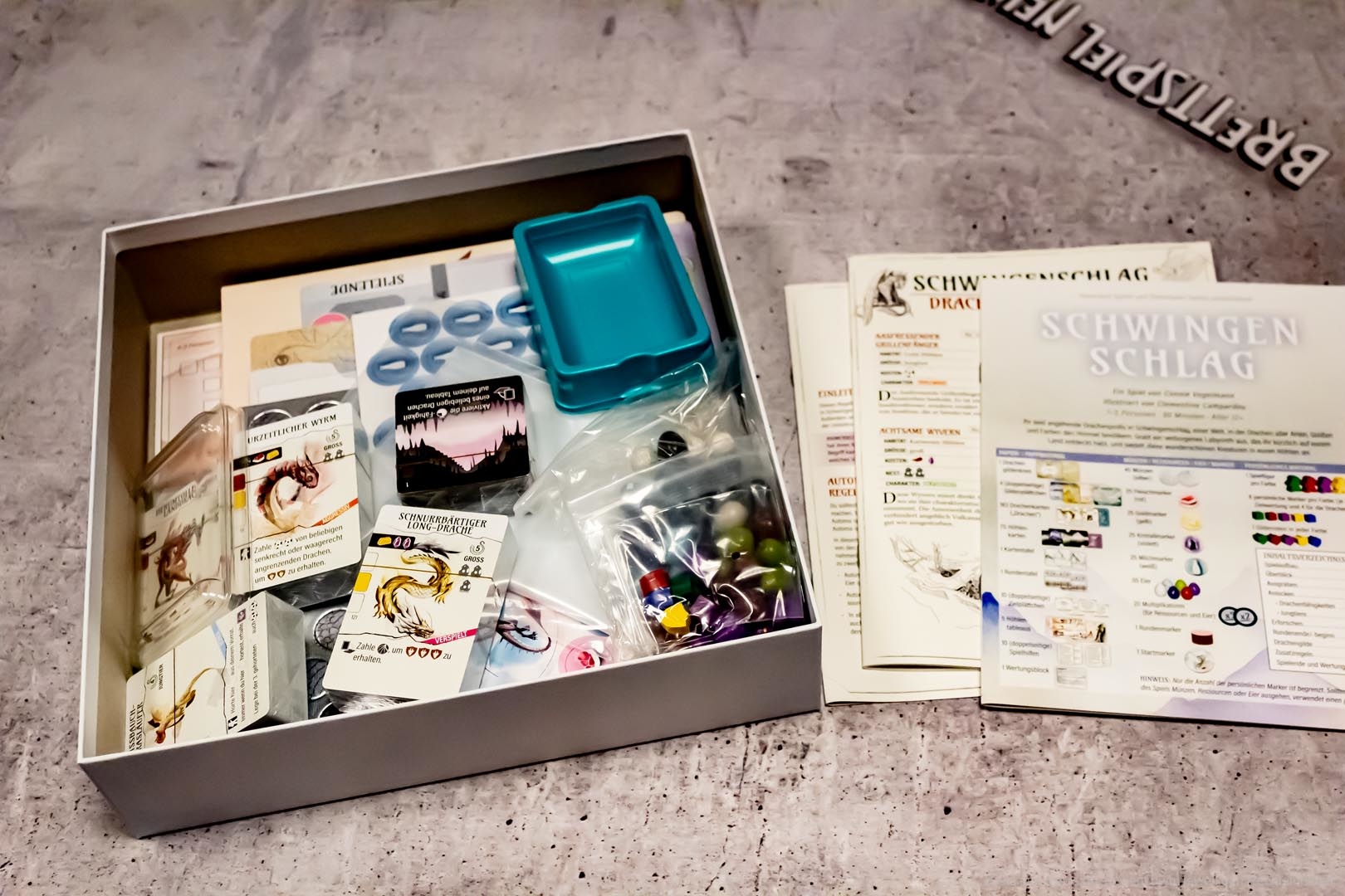 Der Name ist Programm „Schwingenschlag - ein Flügelschlag-Spiel“, ist ein Spin-Off des sehr erfolgreichen Vorgängers. Wer „Flügelschlag“ schon kennt, wird sich schnell in Schwingenschlag zurecht finden, denn die Grundmechanismen sind recht ähnlich. Vorbildlich werden in der Spielanleitung die wesentlichen Unterschiede übersichtlich zusammengefasst.