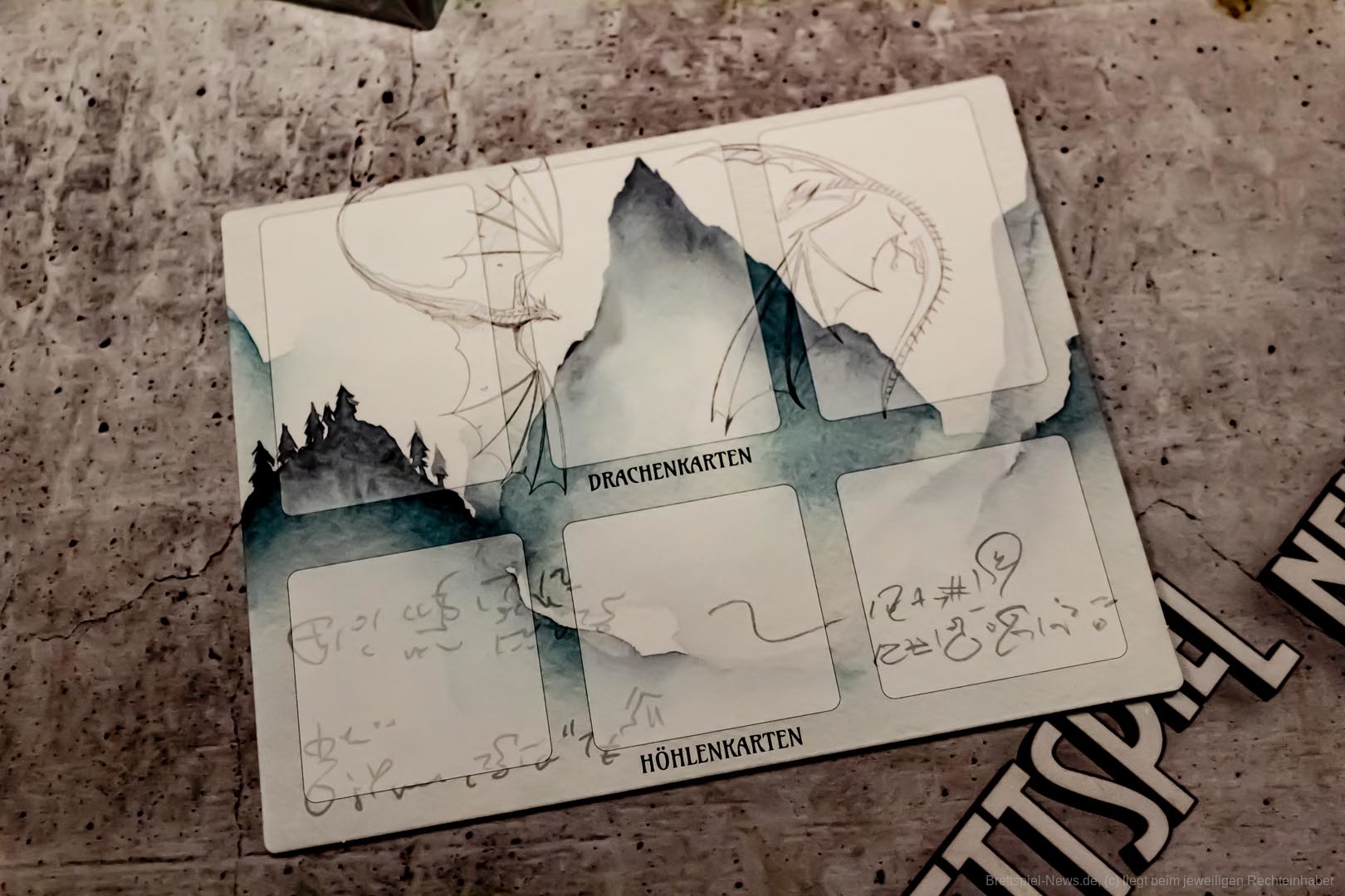 Die Gestaltung und Namensgebung der Drachenkarten ist phantasievoll. Wir können dem Honig-Feendrachen, dem südlichen Mammut-Kammdrachen oder der unscheinbaren Spitzklaue begegnen. Wer noch mehr über diese exotische Wesen in Erfahrung bringen möchte, schmökert in der beiliegenden Drachen-Steckbrief Broschüre, in dem alle Drachen nochmal ausführlich beschrieben werden. Beispielsweise lernen wir hier, das der fesche Drachling, seinen Namen wegen seines beschwingten Laufstils erhielt, mit welchem er jedem Model Konkurrenz machen könnte. In „Flügelschlag“ standen diese Flavour-Texte allerdings noch direkt auf den Karten und waren somit greifbarer, was uns besser gefiel.