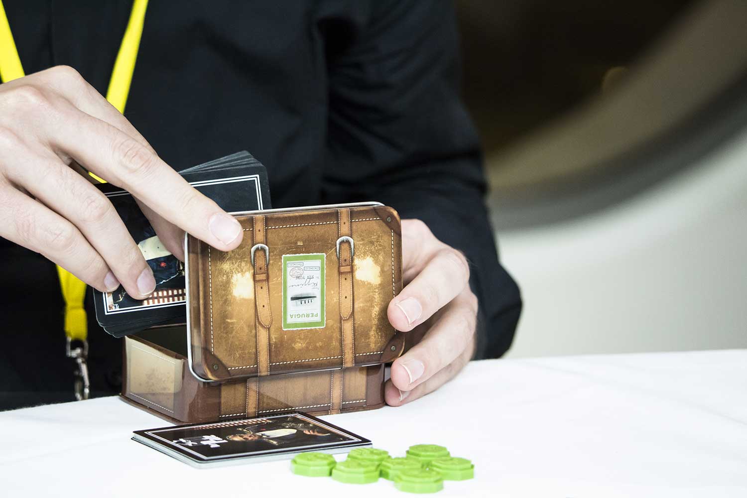 Am ersten Tag der der Internationalen Spieletage Spiel ‘17 in Essen lud Asmodee Pressevertreter zu einem mehrstündigen Anspiel-Event. Bei dieser Gelegenheit kam “Der Pate” auf den Tisch. Plötzlich stand Eric Lang hinter uns und bot bei Regelfragen seine Hilfe an.