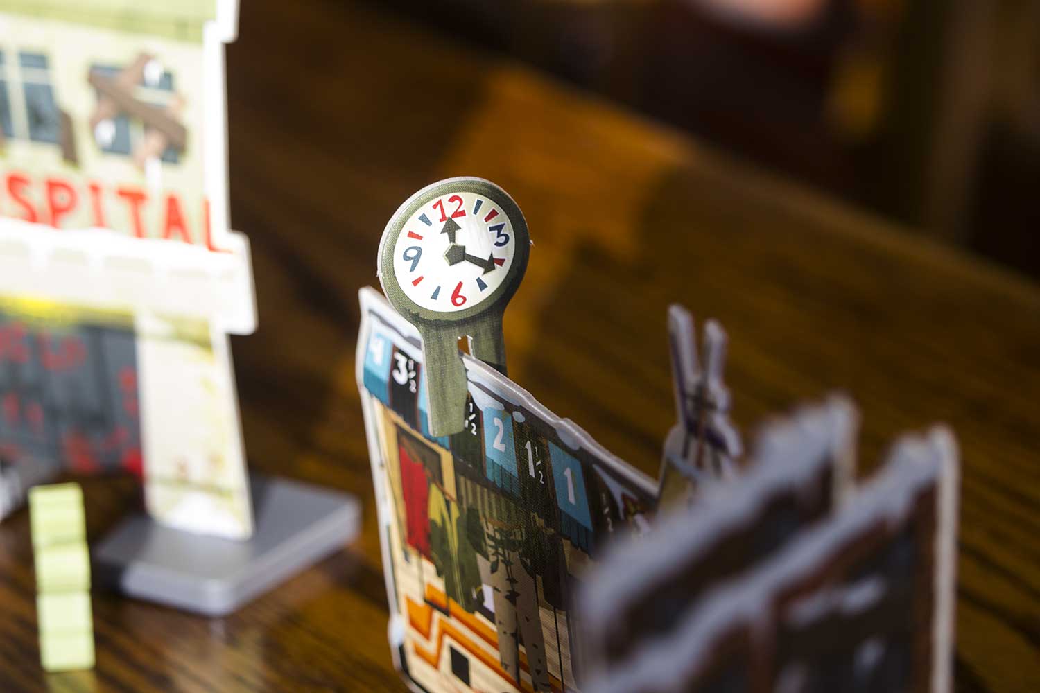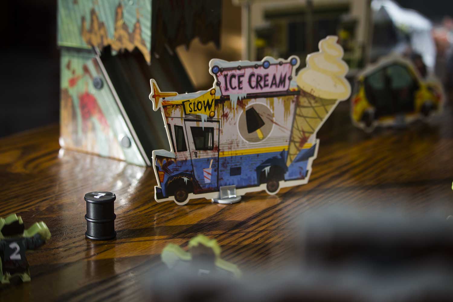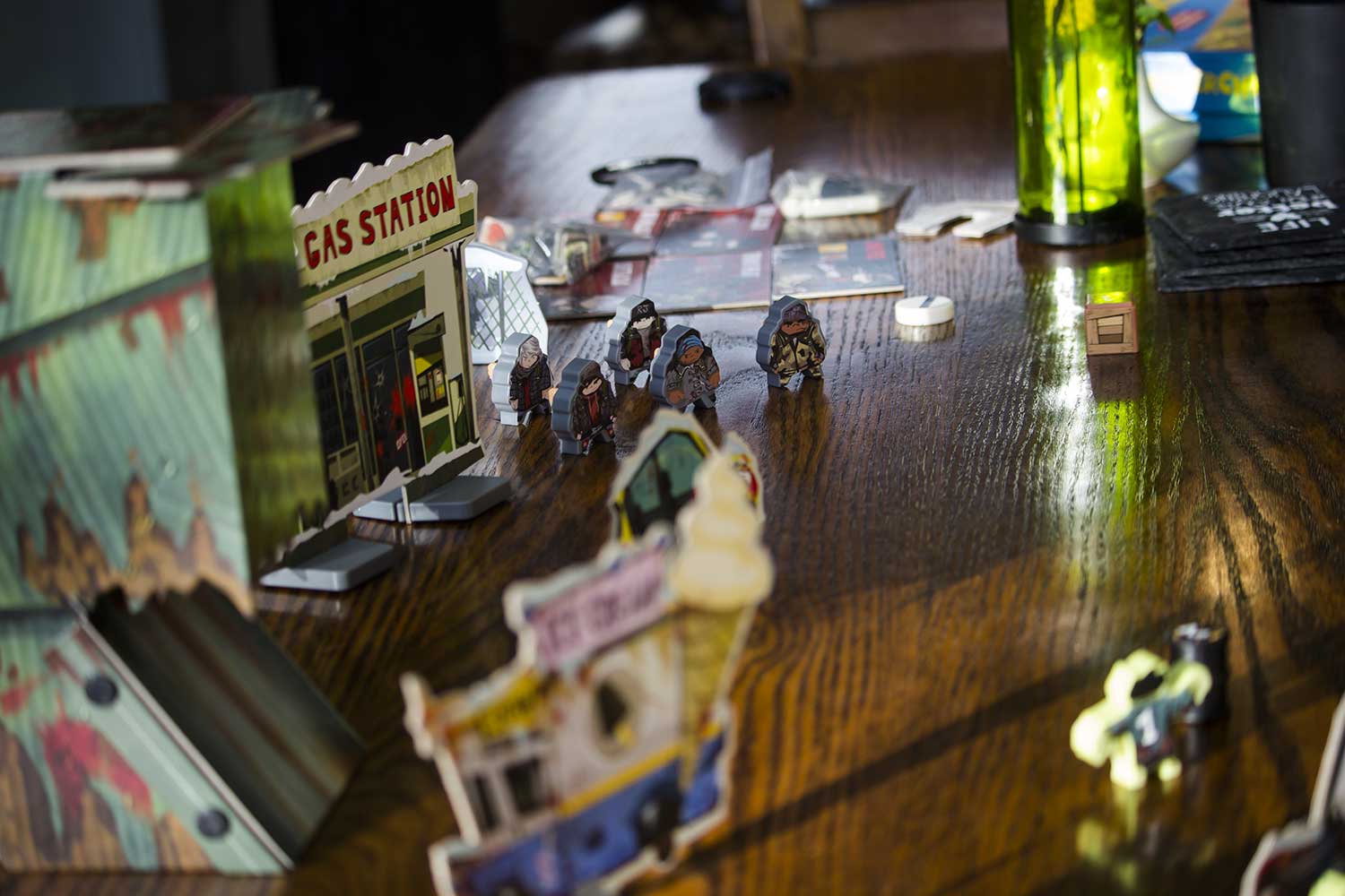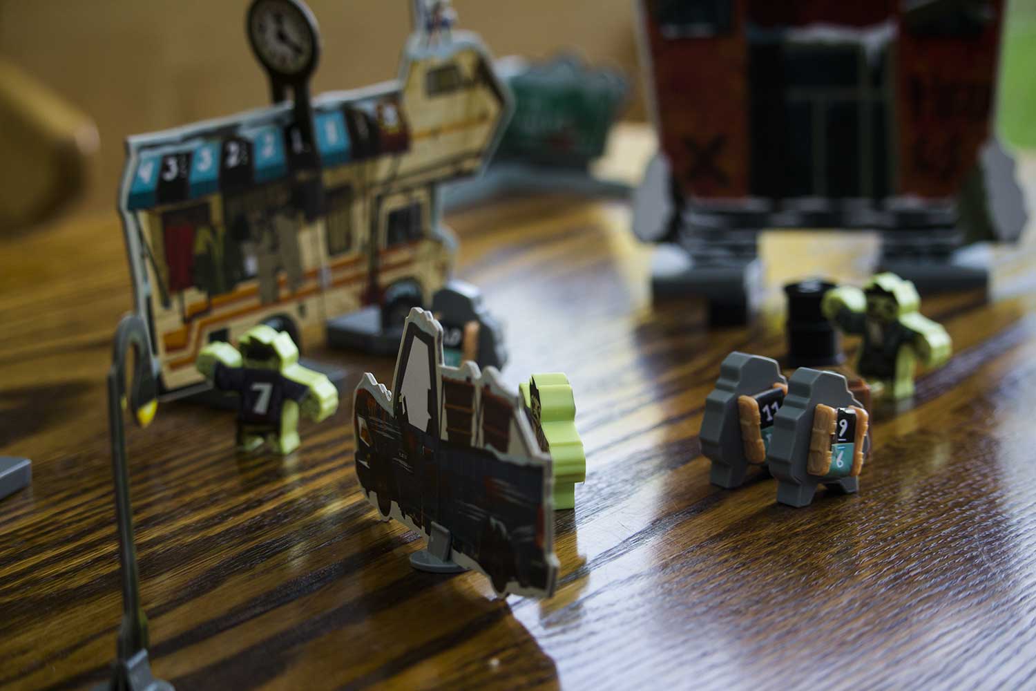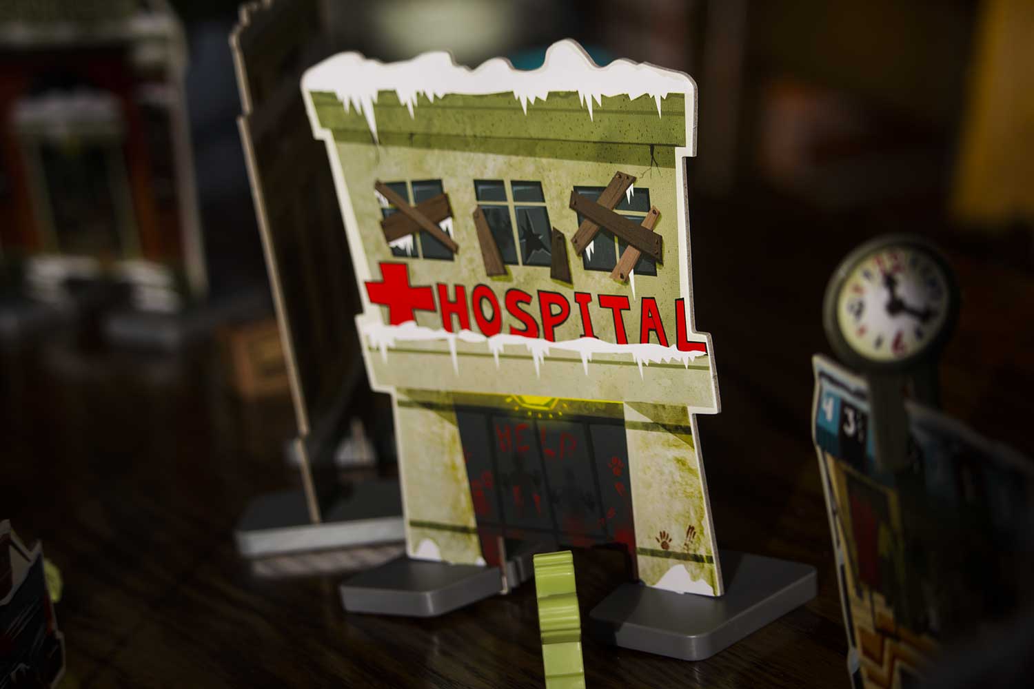 Jedes Szenario hat einen eigenen Aufbauplan. Die Gebäude, Zombies, der Zombieturm die Fahrzeuge und auch die Helden werden entsprechend aufgestellt. Für das Spiel benötigt man einen großen Tisch, der im Idealfall komplett zu umrunden ist. Es dauert sicherlich 5-10 Minuten, bis alles an seinem Platz ist. Das Spiel kann beginnen.
