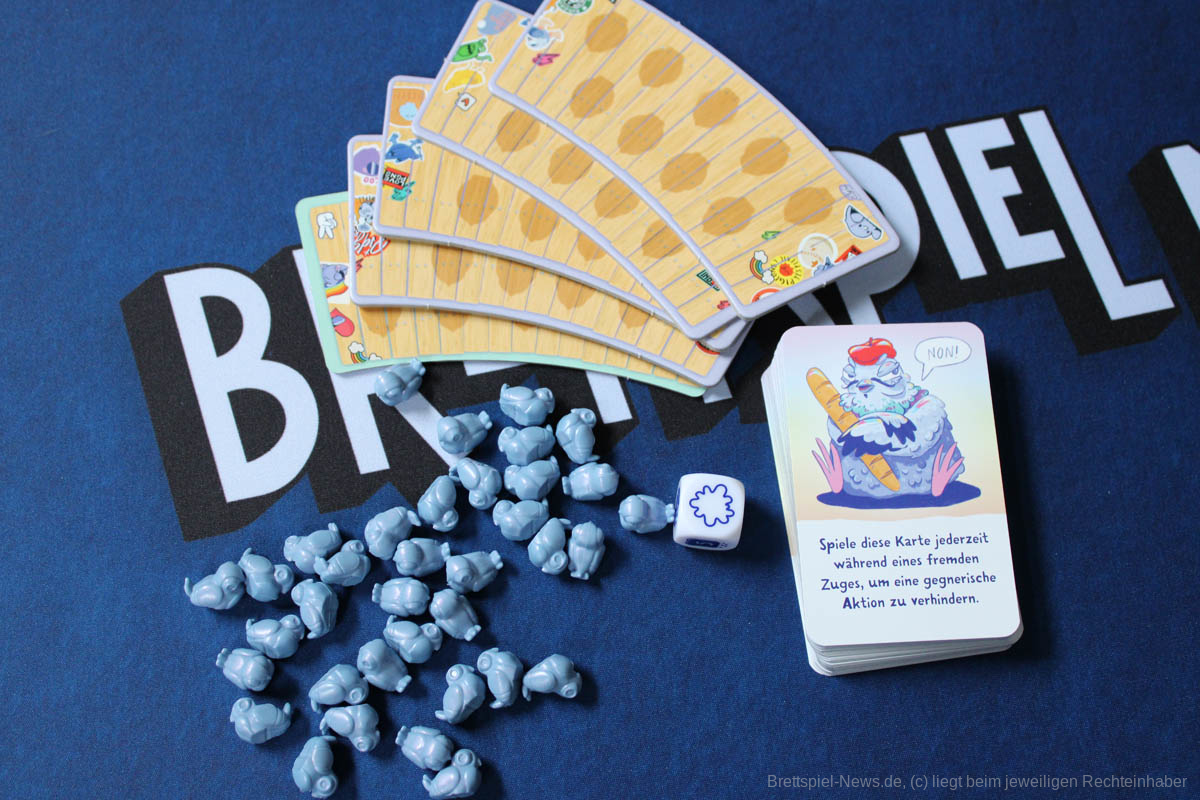 Wenn die Non-Karten nicht im Umlauf sind, fehlt dem Spiel die Chance noch in das Treiben der anderen einzugreifen. Schutzlos muss ich zusehen, wie jemand mit dem Würfel fünf Tauben aus dem Schwarm holt. Das ist einfach zu viel. Ich gehe mal davon aus, dass so etwas mit etwas Spieltischpolitik wieder ausgeglichen werden soll, aber dafür braucht es erst einmal die richtigen Karten.