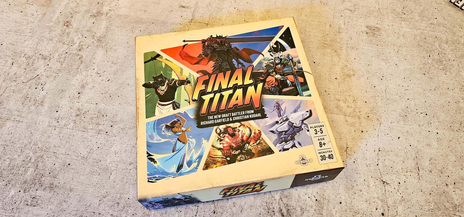 „Final Titan“ hat mich auf mehreren Ebenen positiv überrascht. Nerdlab Games, ein sympathisches deutsches Studio, das bereits mit „Mindbug“ und „Agent Avenue“ kreative Ideen überzeugend umgesetzt hat, zeigt auch hier wieder Mut zur Originalität.