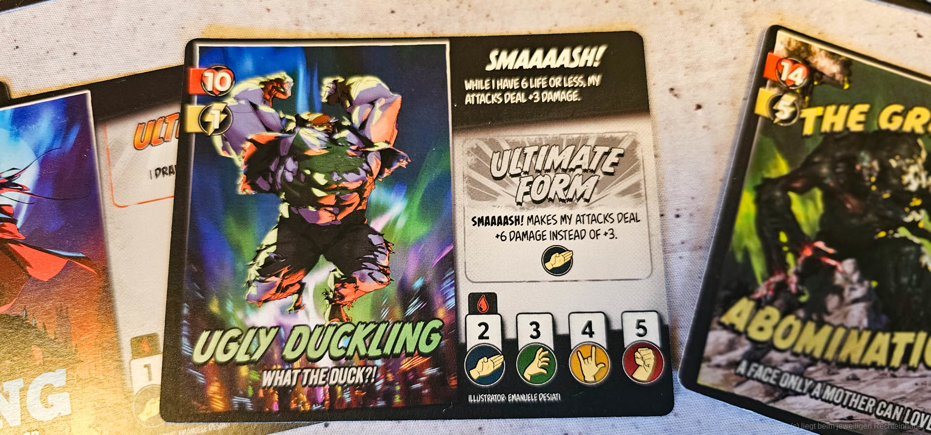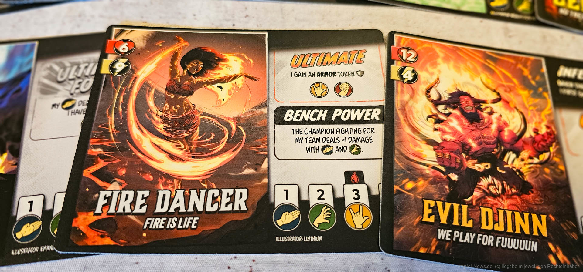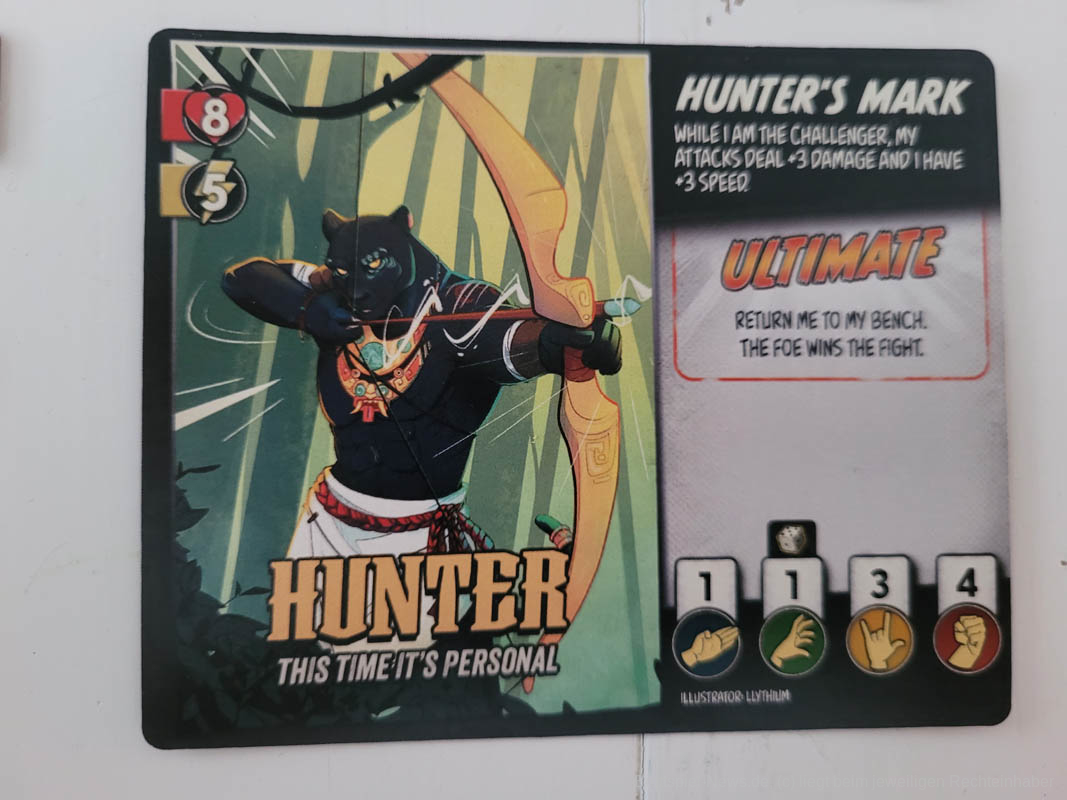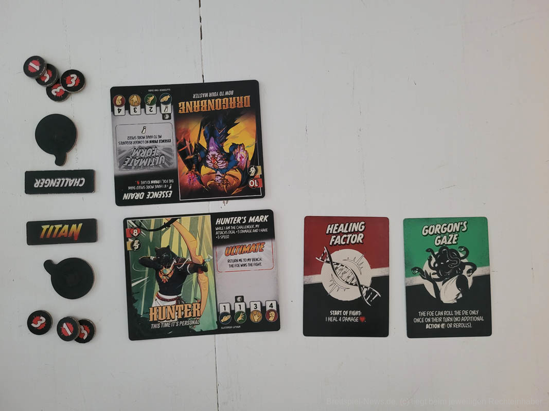 Ein besonders positiver Aspekt von „Final Titan“ ist die niedrige Einstiegshürde. Das Spiel ist sehr schnell erklärt. Bei meinen Testrunden konnte ich teilweise sogar während des Spielens die Regeln vermitteln – etwas, das ich sonst zu vermeiden versuche. Trotzdem entstehen sofort emotionale und mitreißende Momente. Das Spiel lebt von diesen Tischdynamiken: lautes Anfeuern, fiese Kommentare ausgeschiedener Mitspielender und dramatische Gefechte in der Arena. Diese Art emotionaler Interaktion erinnert stark an Spiele wie „Luchador!“.