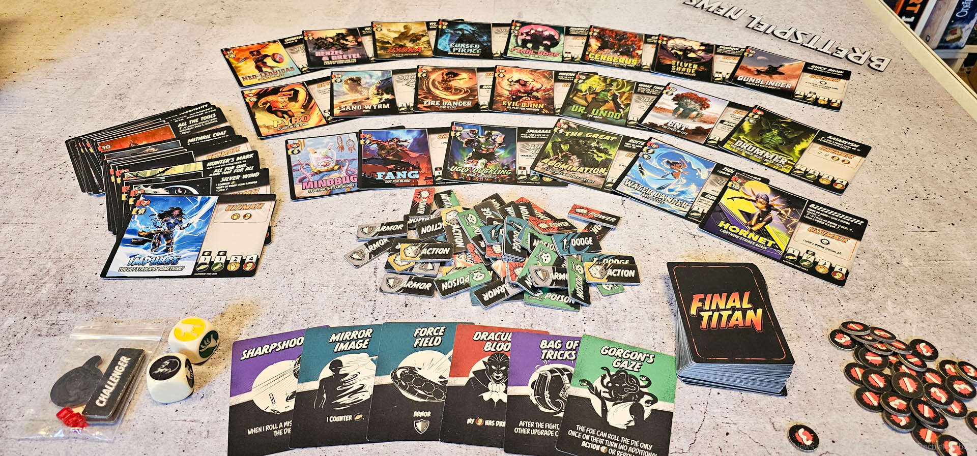 Zunächst möchte ich betonen, dass es sich bei „Final Titan“ um einen Prototyp handelt. Material, Spielmechaniken, Regeln, Werte und Kartentexte befinden sich noch in der Entwicklung und können sich bis zur finalen Version ändern.