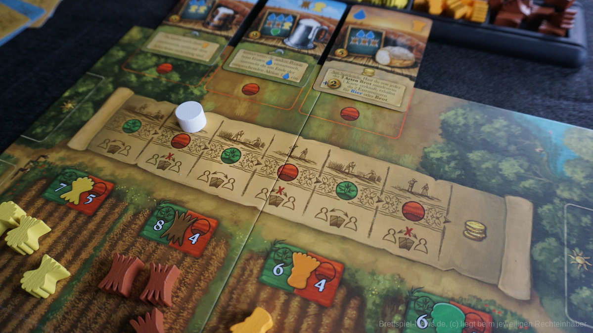 Es gibt je drei unterschiedliche Sorten Brot und Bier, die zwischen 4 und 9 Münzen einbringen. Da die verfügbaren Brot- und Biersorten schnell durchgespielt sind, bietet „Beer & Bread“ weniger Entdeckerspaß, der für uns neben strategischer Vielfalt ein wichtiger Faktor für den Wiederspielreiz ausmacht.