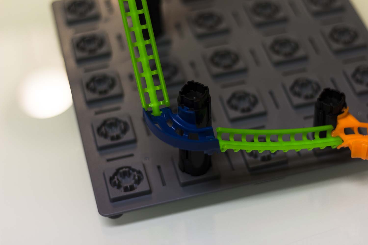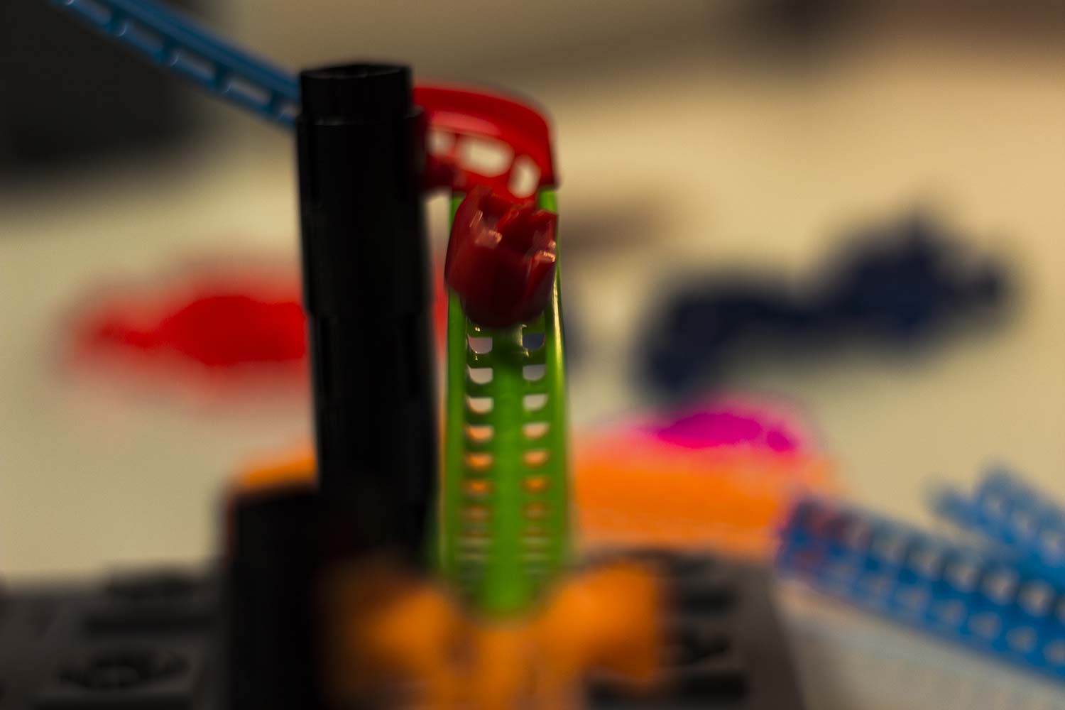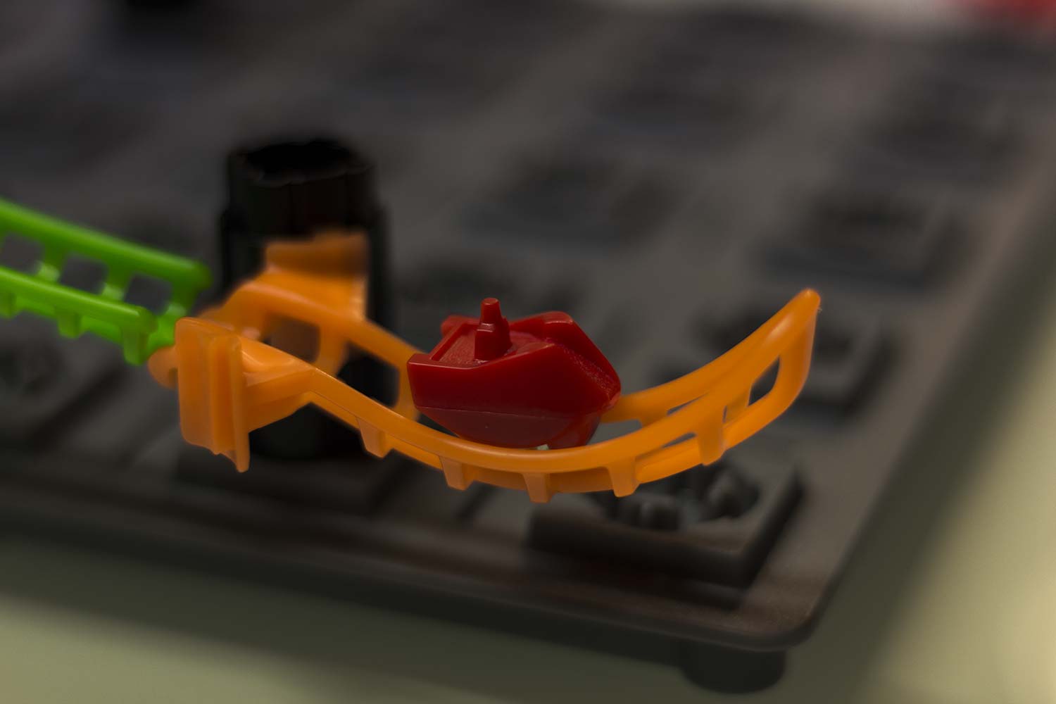 Was wirklich toll an dem Spiel ist, ist das es hier keine Punktemechanismen gibt, nichts, was einen künstlich motivieren soll zu spielen. Wenn man einmal anfängt zu bauen, dann will man es einfach schaffen. Teilweise muss man recht lange bauen um die Bahn auszuprobieren können. Das erhöht dann die Spannung, ob das Konstrukt funktioniert. Kommt die Bahn an das Ziel, fliegt es vorher aus der Bahn?