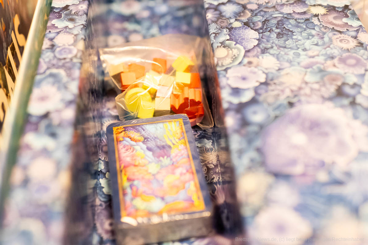 Ansonsten werden Siegpunkte verteilt für Mehrheiten in den Korallengebieten, mit Nahrungswürfeln versorgte Fische und dem Fortschritt auf dem Strom.
