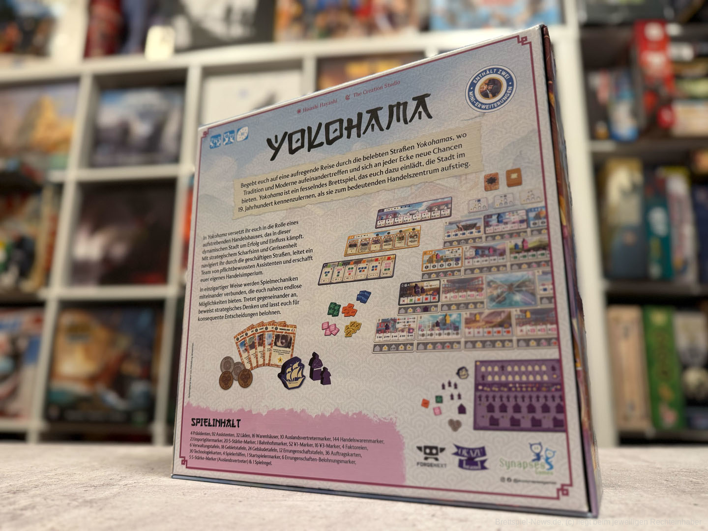 Spielerisch gab es nicht wirklich Veränderungsbedarf, da das ursprüngliche Spiel bereits mit einem spannenden Spielmechanismus durchaus zu überzeugen wusste. Zugängliche Regeln, kurze Züge und dadurch geringe Wartezeiten, sowie ein spannendes Rennen um die Bonusplättchen und die besten Plätze im Zollamt und der Kirche ergeben ein stimmiges Gesamtbild. Uns gefällt, dass stets alle Informationen allen zur Verfügung stehen und somit das spielerische Geschick im Vordergrund steht. Der Spielmechanismus wirkt elegant und es gibt verschiedene Strategien, die zum Erfolg führen können. Das Spielende kann überraschend ausgelöst werden, daher ist gutes Timing und das Beobachten, wie die anderen agieren, wichtig in „Yokohama“.