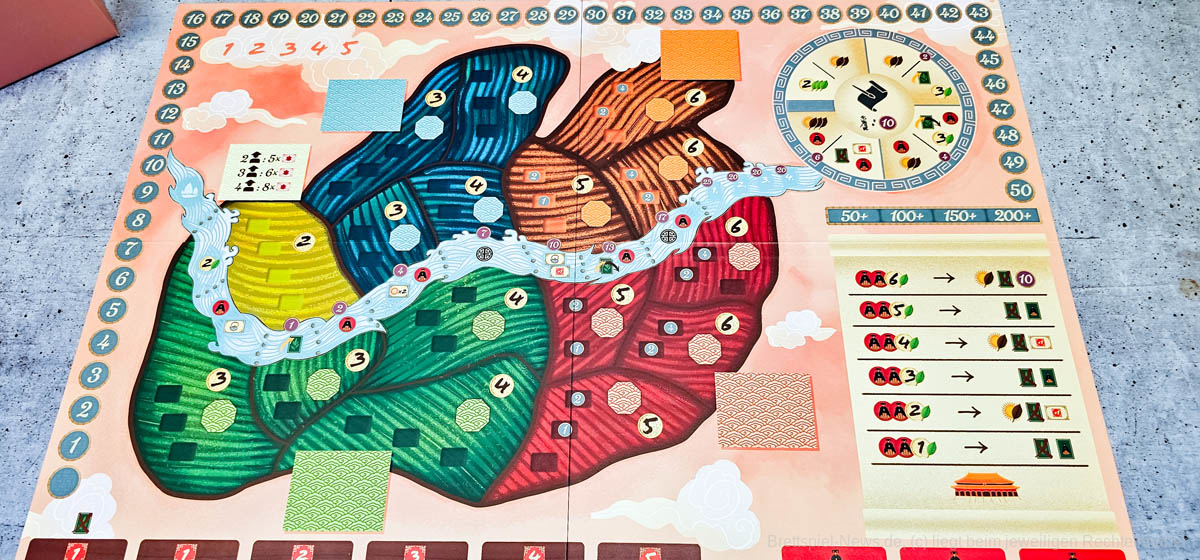 Die Interaktion zwischen den Parteien ist eher indirekt. Wir schnappen uns Regionen und Karten vor den anderen Spielern. Aber wir sabotieren die Gärten nicht in Form von Nimm-das-Aktionen. Im Spiel zu viert ist "Tea Garden" sicher am dynamischsten, da mehr Personen Karten kaufen und Regionen besetzen. Zu zweit spielt es sich eher solitär. Oft gibt es bei Spielen Anpassungen des Spielaufbaus in Abhängigkeit von der Spielerzahl. Das ist hier nicht der Fall. Eine Designentscheidung, die ich nicht ganz nachvollziehen kann.