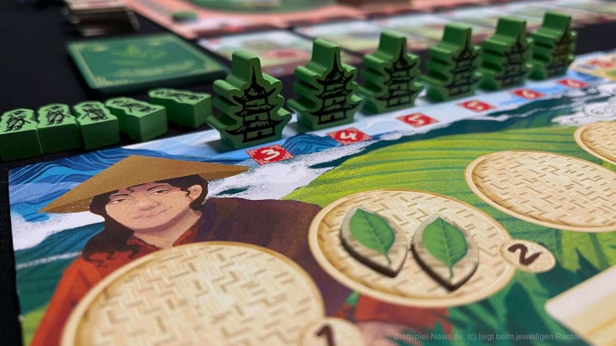 Die Schlüsselelemente des Spiels sind Deck-Building und Worker-Placement, aber der faszinierendste Teil ist wahrscheinlich das Ressourcenmanagement mit den Teeblättern. Besonders gefallen hat mir auch die Strategievielfalt, die Tea Garden bietet. Bei diesem Spiel gibt es nicht die eine Strategie, die allen anderen überlegen ist. Flexibilität ist das Stichwort. Durch die Karten, die wir kaufen können, müssen wir unsere Strategie oft anpassen. Ich hatte nie das Gefühl, dass ich nicht weiterkomme. Es gibt immer Aktionen, die es sich zu spielen lohnt. Auch die Entscheidung, ob eine vierte Aktion sein muss, ist spannend.