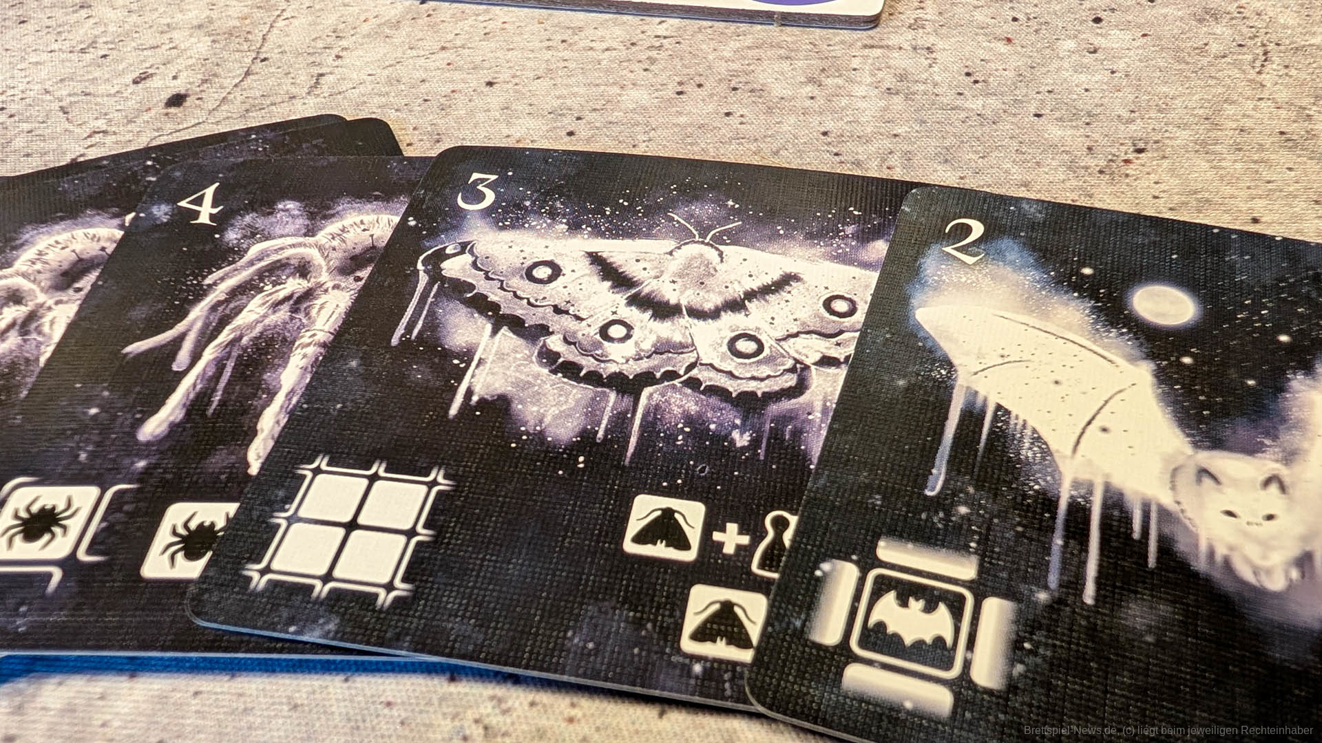 Sind alle Regeln im Groben geklärt, erwartet einen ein Spiel, das einfach nur reduziert wirkt. Wären die Punktechips und der eine Gleichstandsmarker nicht mit dabei, hätte es auch in eine dieser Verpackungen gepasst, die an Booster von Trading Card Games erinnern. Doch ich meine nicht nur das Material. Auch spielerisch kommt nicht so viel dabei herum.