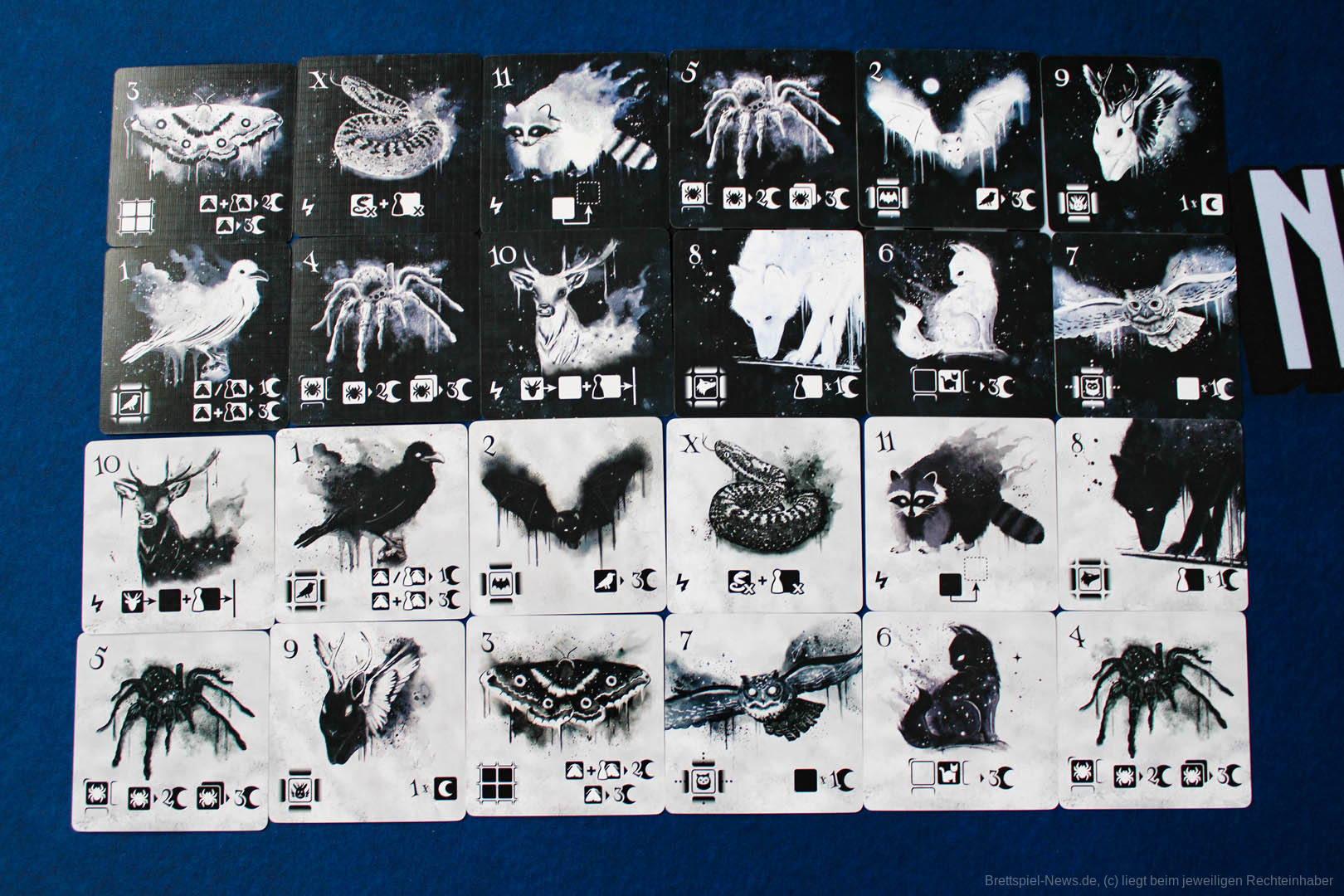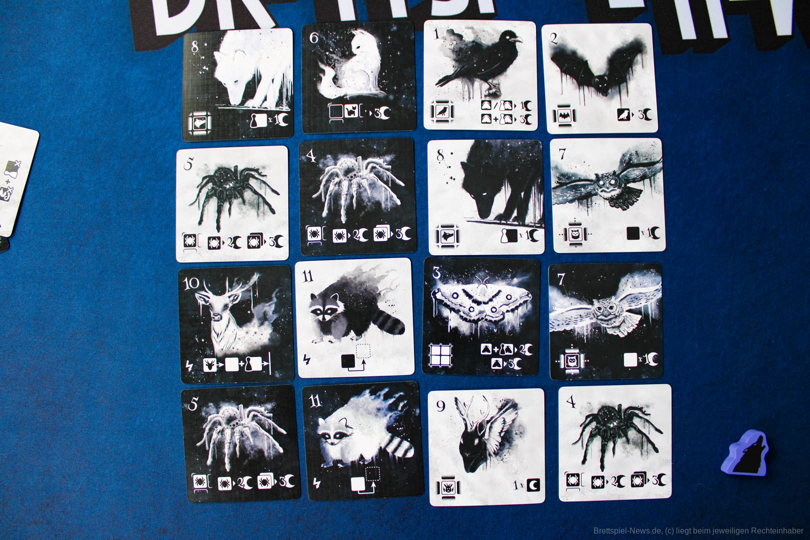 Das Lernen der einzelnen Effekte und Bedingungen der Tiere ist die erste Herausforderung. Dabei steht der Schwarz/Weiß-Stil einer treffenderen farblichen Codierung der Ikonographie leider im Weg. Immer wieder musste ich, ebenso wie meine Mitspieler, in die Anleitung schauen.
