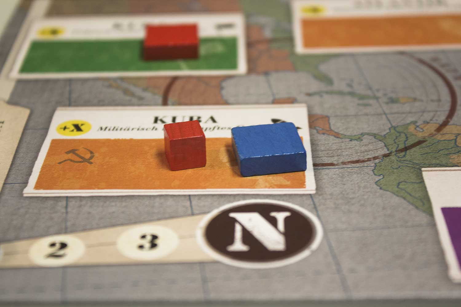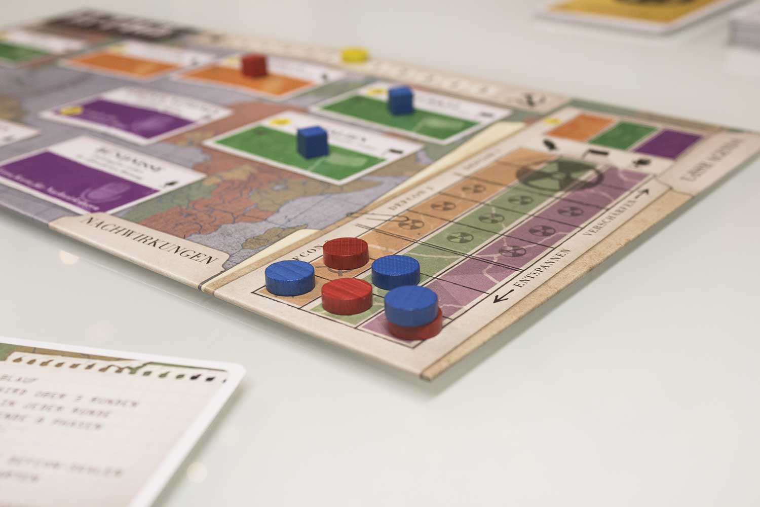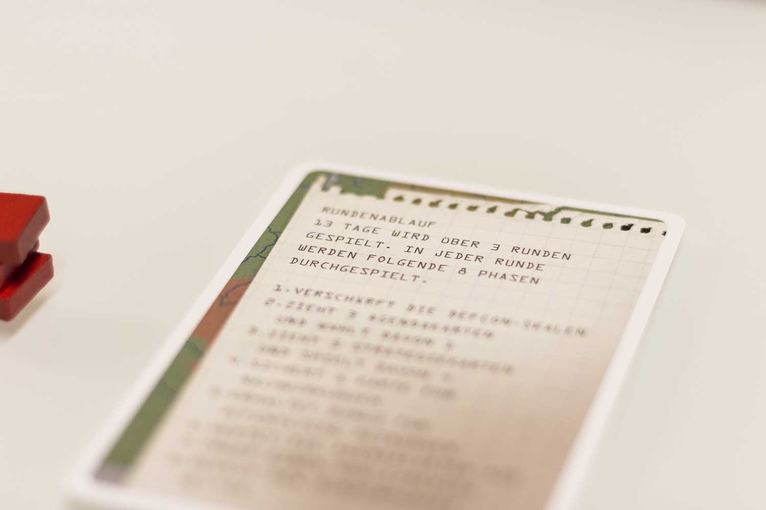 7. Nuklearkrieg: Nun wird noch geschaut, ob ein Spieler einen Nuklearkrieg beginnt und damit das Spiel verliert. Das passiert, wenn drei Marker einer Nation in der Defcon-Zone 2 liegen, oder ein Marker in Defcon 3.