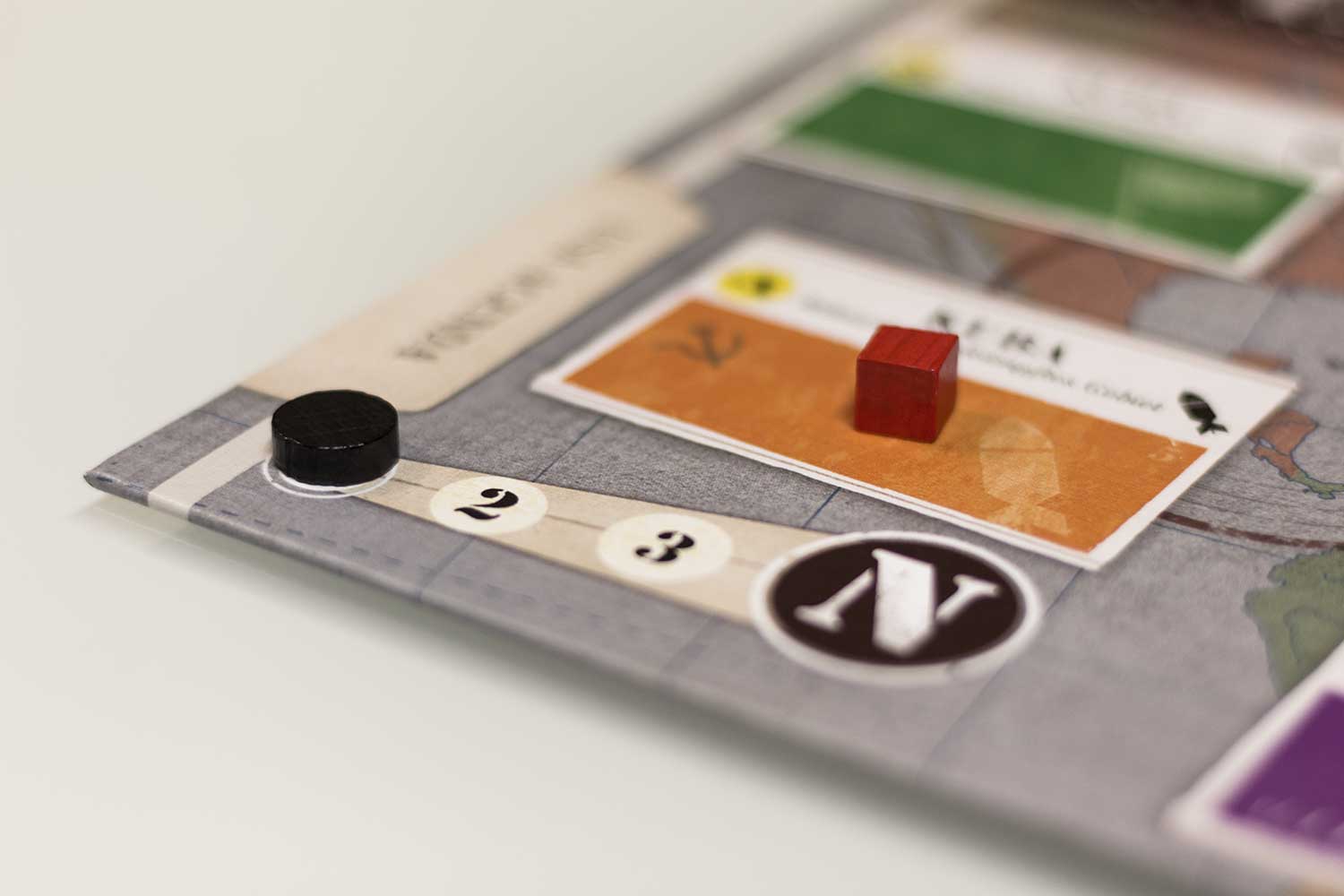 5. Bonus erhalten: Die drei Felder öffentliche Meinung (lila) werden gewertet. Jede Mehrheit bringt dem dominierenden Spieler Ansehenspunkte oder ander Boni.