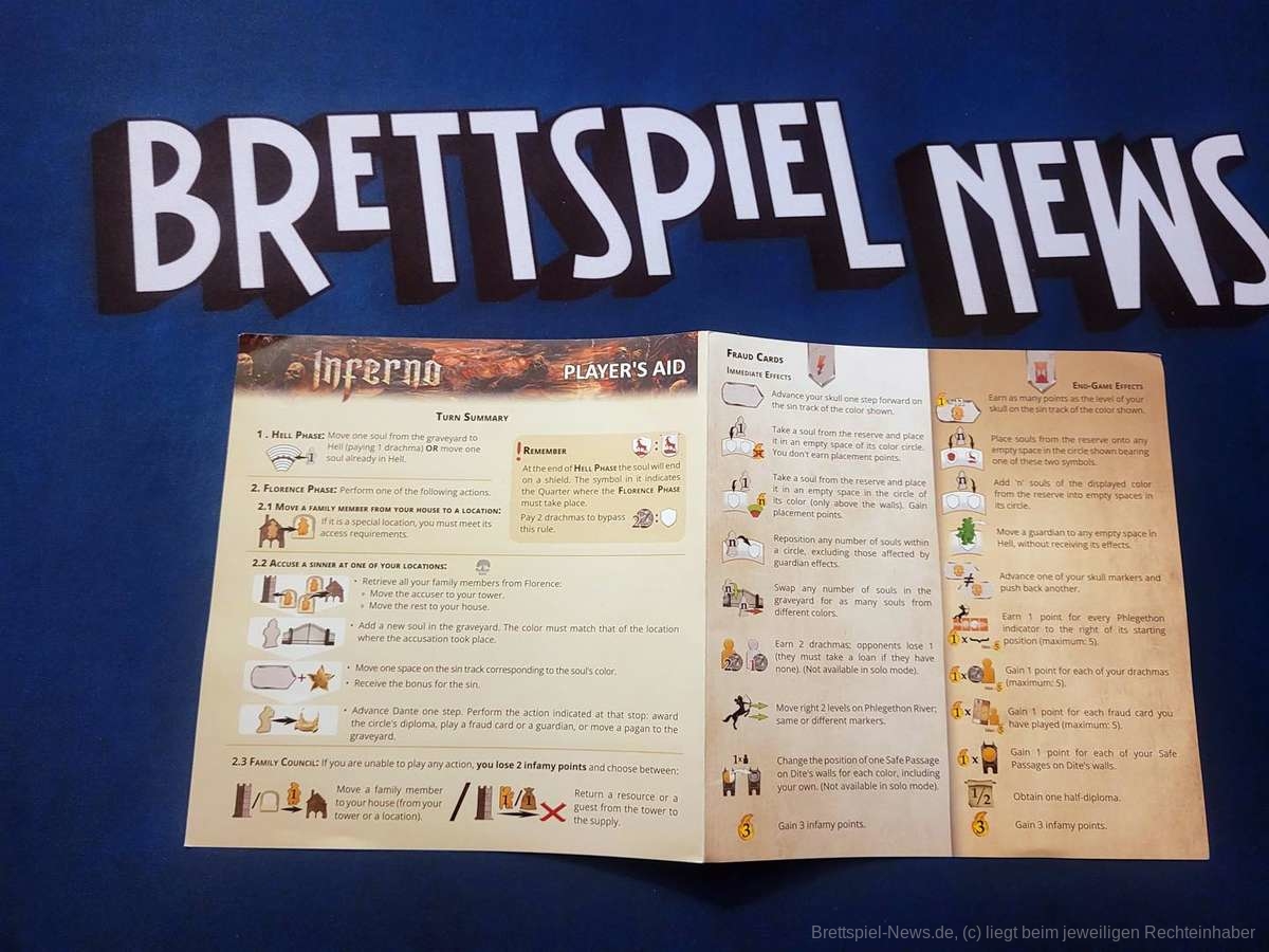 "Inferno" richtet sich definitiv an Vielspieler. Die Regeln sind zwar nicht übermäßig kompliziert, aber die Vielzahl der Möglichkeiten und Abhängigkeiten kann gerade Gelegenheitsspieler überfordern. Die Anleitung umfasst 24 Seiten im A4-Format und ist mit vielen Bildern und Beispielen gefüllt.