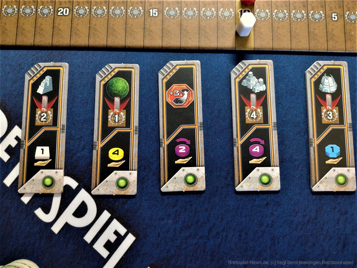 Die Bonus Plättchen, die man pro Runde wählen konnte sind wieder enthalten und können beim Passen ausgetauscht werden.