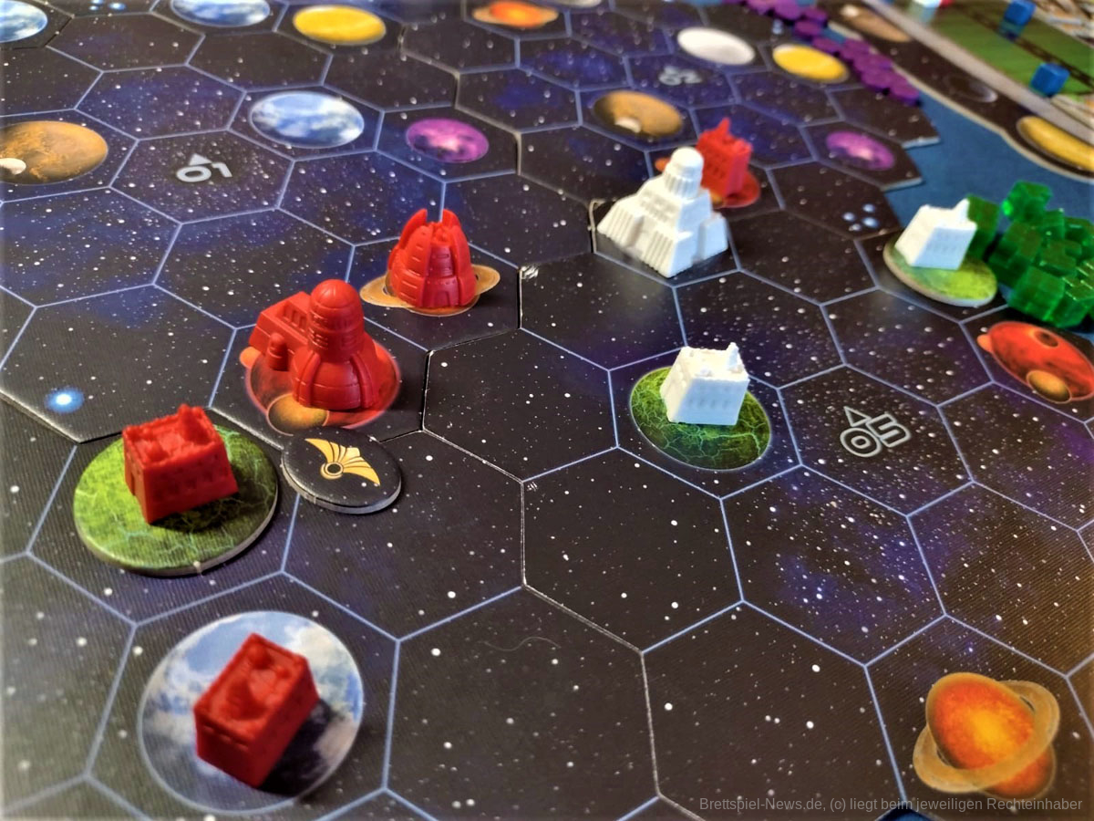 “Gaia Project” bietet einfach mehr dynamische Wege, sich im Weltall zu entfalten. Hier wird ein Spieler immer einen Weg finden durch eine kurzfristige Reichweitenerhöhung doch noch einen Planeten zu finden, den er Terraformen kann. Klassisches Terraformen ist in der Bedeutung, durch neue Aspekte etwas abgewertet worden, und das ist tatsächlich gut so.