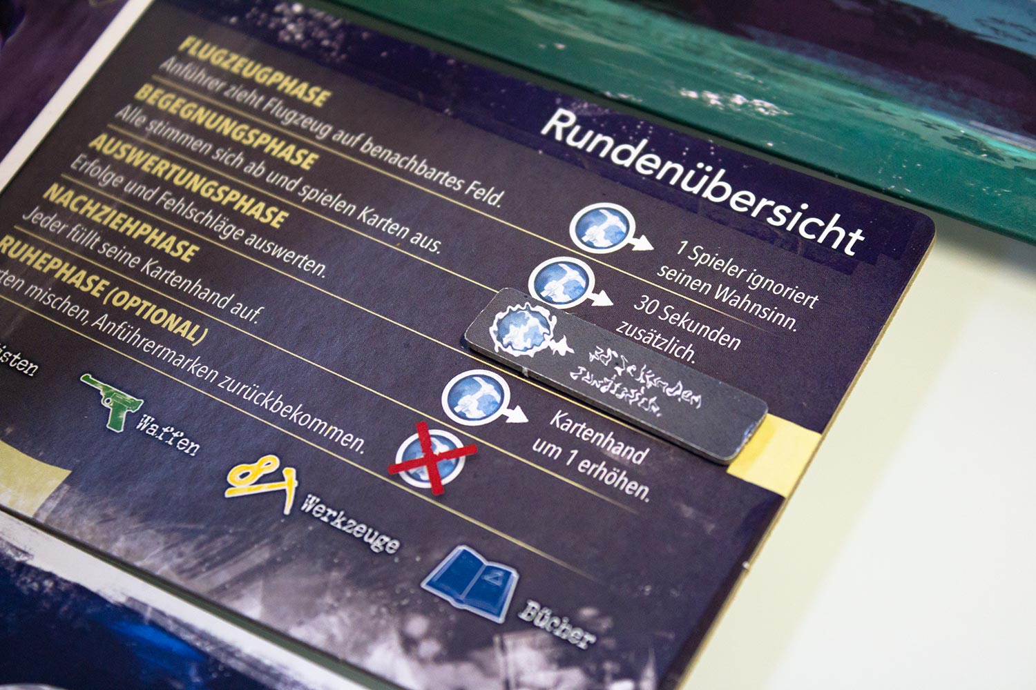 Das ist die Stärke und gleichzeitig die Schwäche des Spiels. Es ist vor dem Spiel sehr wichtig klarzumachen, was passiert und jedem Spieler beim ersten Spiel freizustellen, mitzumachen oder es zu lassen. Wenn das Spiel einmal läuft und alle ziehen mit, dann beginnt eine rasante Reise, die einen voll auf das Spiel fokussieren lässt. Trotz des steigenden Drucks sorgen die Wahnsinnskarten immer wieder für ausreichend Spaß und damit Entspannung am Spieltisch.