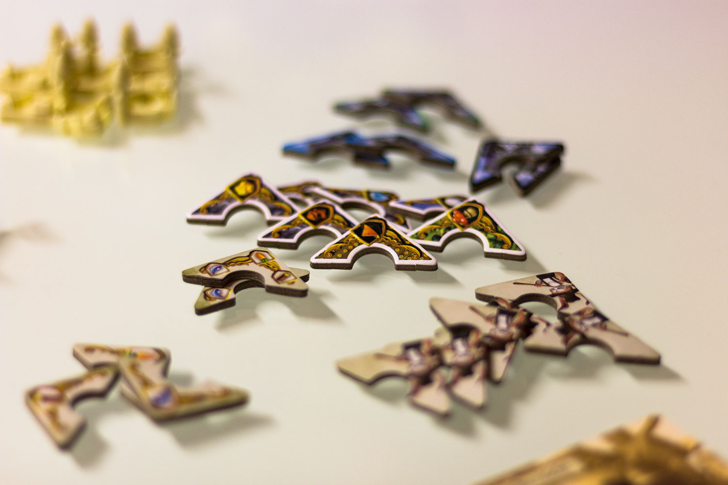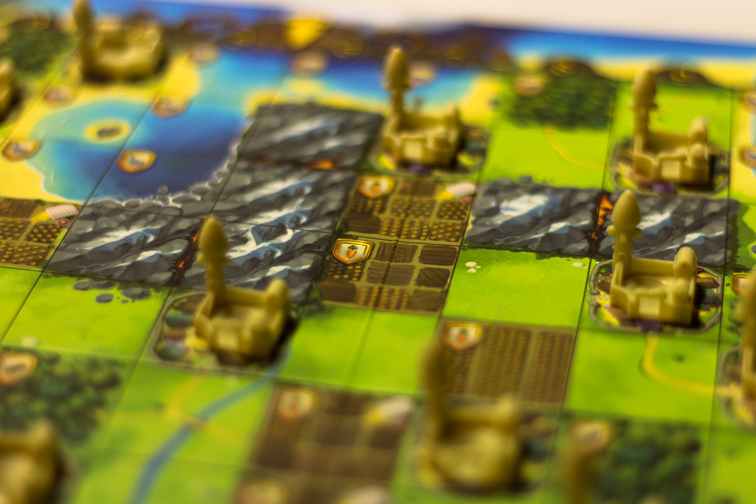 Nun wird geschaut, was nach der ganzen Mühe des Tages übrigbleibt. Die Punkte gibt es für den Wohlstand mal die Stärke eines Lehens. Ein Lehen ist ein zusammenhängendes Gebiet eines Spielers. Die Stärke wird durch die Anzahl der Türme der Bauwerke bestimmt. Der Wohlstand über die Anzahl verschiedener Ressourcen. Sind drei Ressourcen vorhanden und vier Türme im zusammenhängenden Lehen, bringt das 3x4 = 12 Punkte.