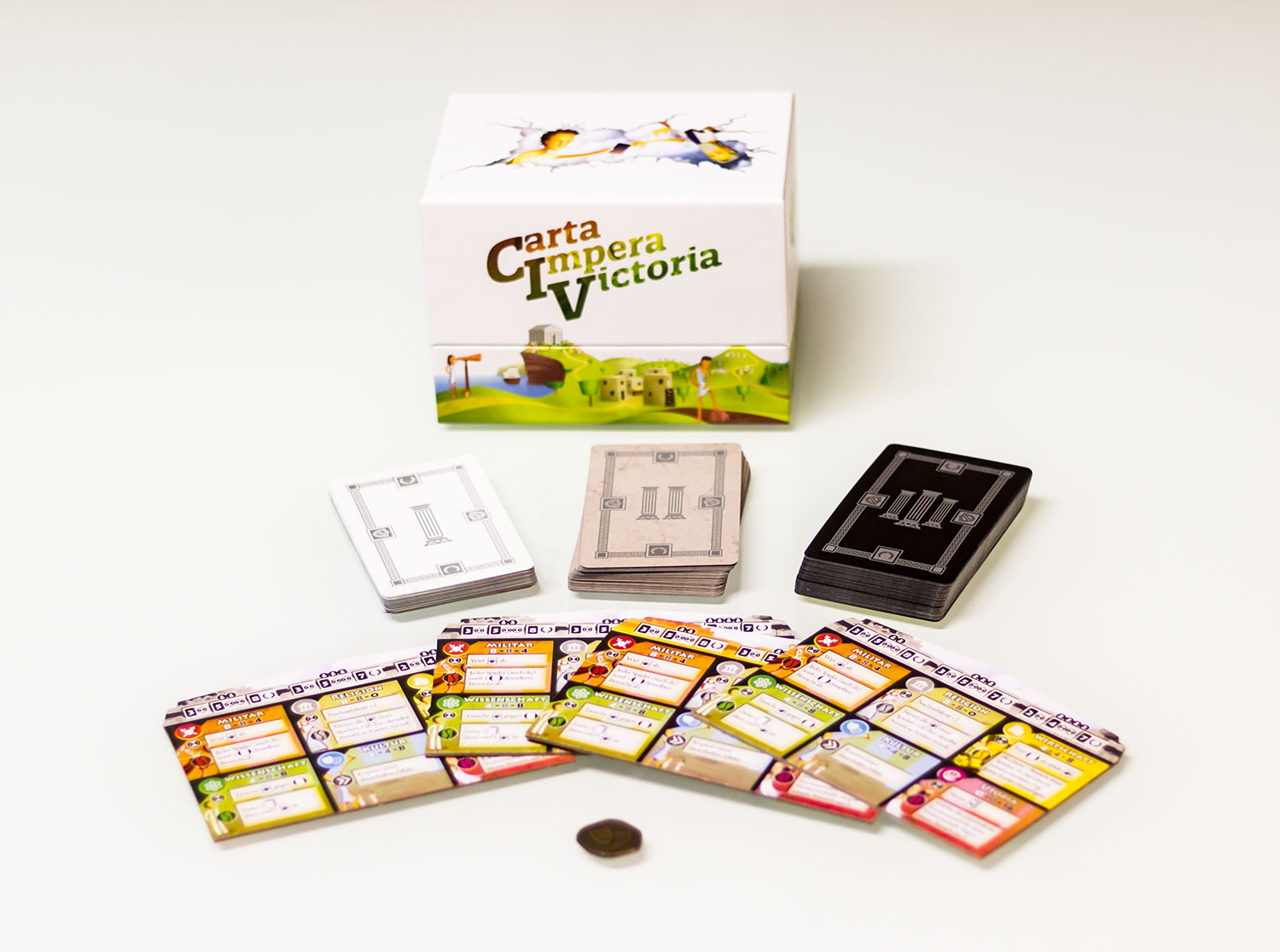 Eines muss man der kleinen Box lassen: „Carta Impera Victoria“ ist durchgängig hübsch und schlüssig produziert. Auch die Regeln sind schnell verinnerlicht und das Spiel geht nach wenigen Runden schon schnell von der Hand. Doch was taugt das Kartenspiel am Spieltisch? Das haben wir uns mal angeschaut!