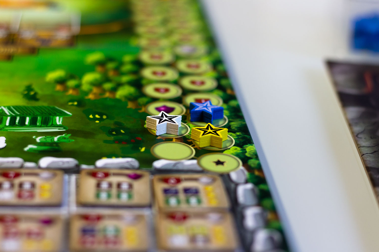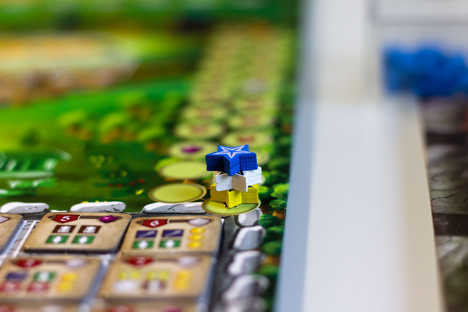 Schade ist auch, dass Hütten für Siedler teuer erstanden werden müssen, und das Siedeln viele Aktionen kostet, bis alles beisammen ist, nur um dann eine Hütte in das eigene Dorf zu stellen, ohne dass dafür noch etwas passiert. Warum gibt es nicht noch eine Belohnung dafür? Das ist verschenktes Potential. Das bezieht sich auch auf das die letzten Runden des Spiels, wenn die führenden Spieler kaum noch eingeholt werden kann.