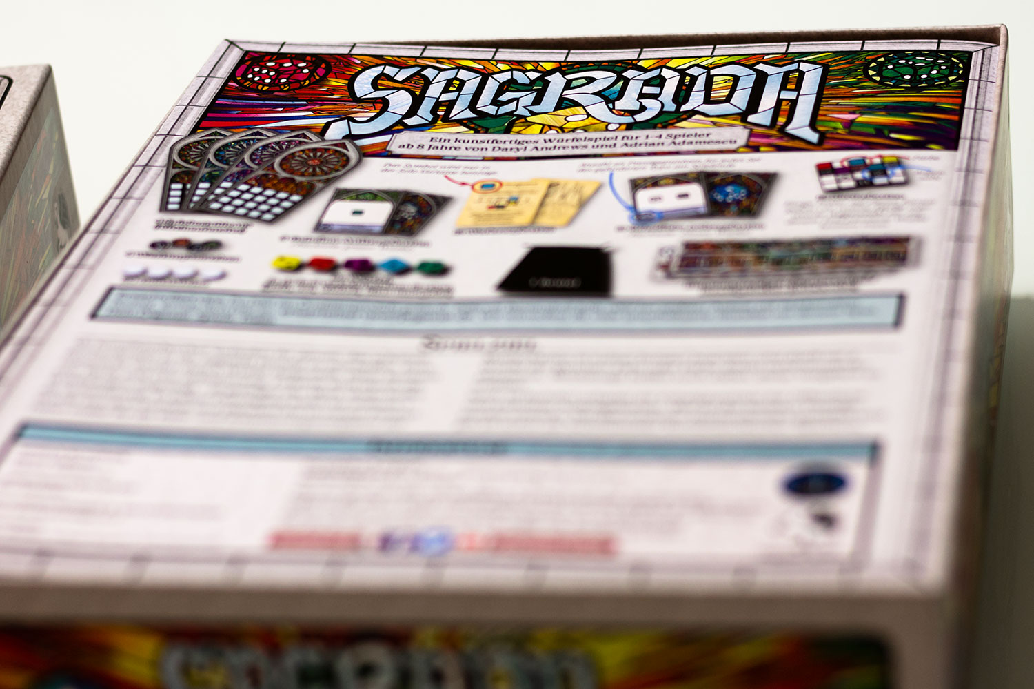 „Sagrada“ hat mir sofort gefallen, auch wenn ich sonst eher strategische Spiele vorziehe, ist hier ein gutes abstraktes Spiel entstanden. Die Produktionsqualität ist tadellos und die auch optisch kann es mich mit seinem eigenen Stil überzeugen. Die Verpackung ist matt und glänzend bedruckt. Alle Spielkomponenten sind sicher verstaut und einer Kunststoffeinlage. Die Gunstmarker sind aus Glas und die Fenstertableaus sind aus enorm dicker Pappe. So sollten Spiele 2018 produziert sein!