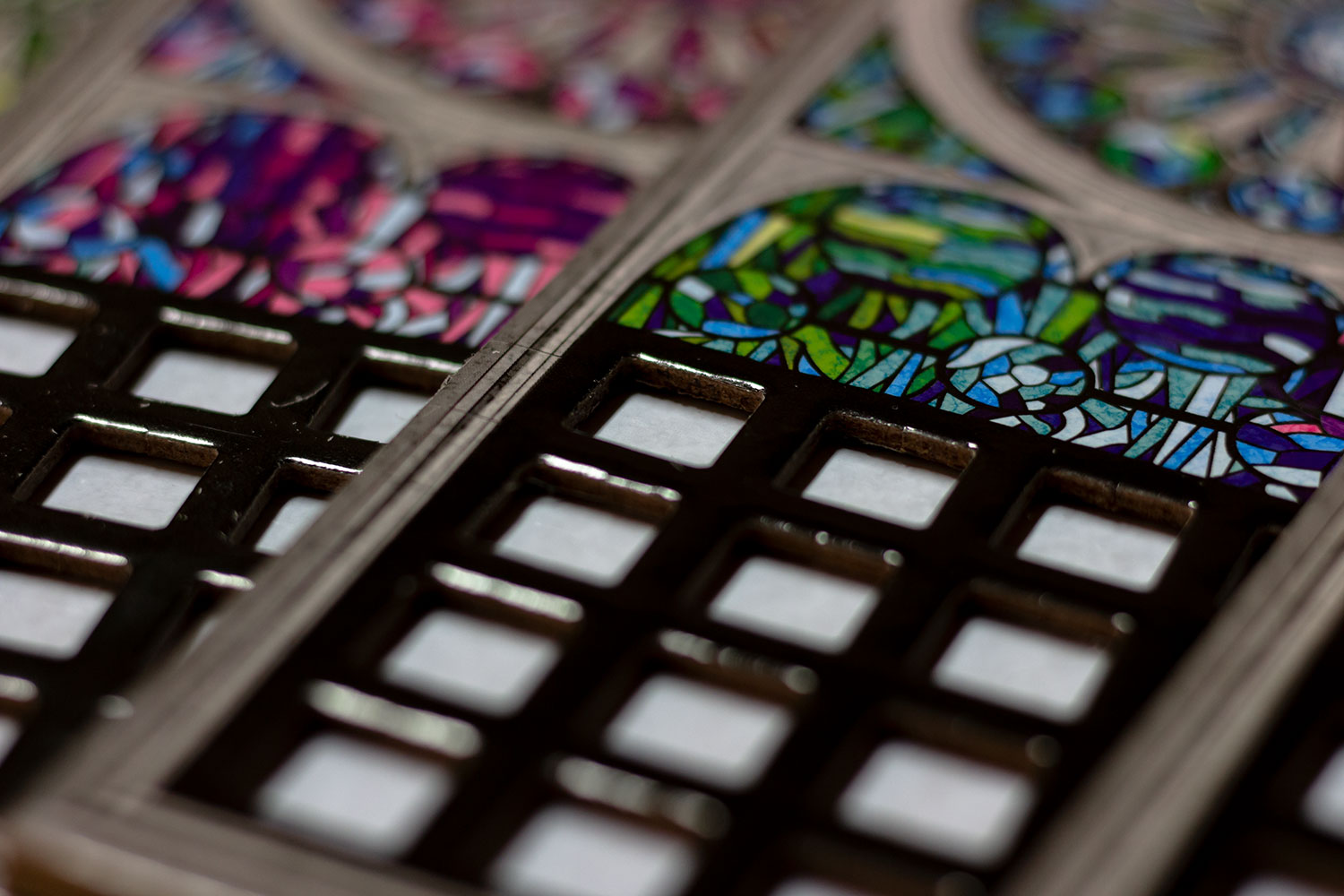 Als Kunsthandwerker wetteifert ihr darum, das schönste Kirchenfenster in der Sagrada Familia zu erschaffen. Eure Glasstücke werden durch Würfel dargestellt. Diese besitzen eine Farbe und eine Schattierung. Letztere wird durch die Würfelaugen angezeigt – je geringer der Wert, desto heller die Schattierung. In jedem Durchgang wählt ihr reihum 1 Würfel aus dem Fundus und platziert ihn in eurem Fenster. Dabei müsst ihr die Farb- und Schattierungsvorgaben der Musterkarten in eurem Fenster beachten und dürft nie 2 Würfel der gleichen Zahl oder Farbe direkt nebeneinander platzieren. Werkzeuge helfen euch dabei, diese Vorgaben zu erfüllen.