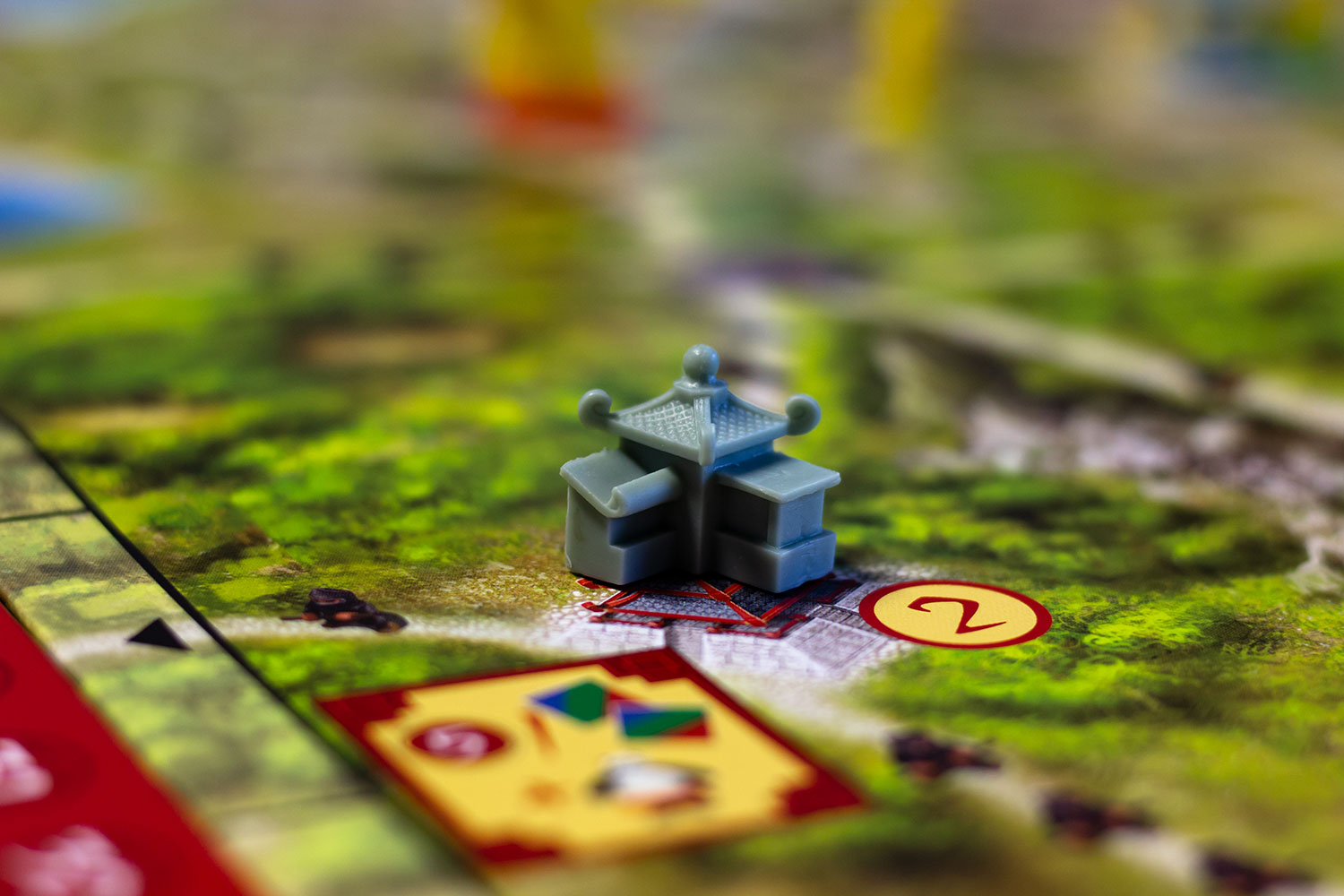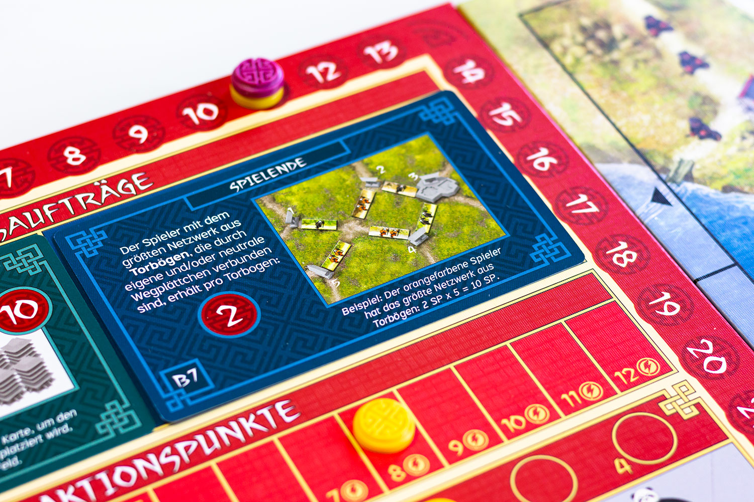 Für jedes Gebäude gibt es Siegpunkte, abhängig von der bereits vorhandenen Anzahl an Gebäude am Ort und den Wachen der Mitspieler, die die angrenzenden Wege bewachen.