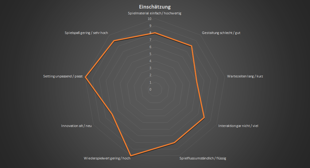 Das beste am Spiel ist jedoch, dass ich es gleich wieder spielen will. Das Spielfeld als auch die Technologien sind variabel. Das verändert den Schwerpunkt des Spiels jedes Mal in eine andere Richtung. Mehr kann ein komplexes Kennerspiel kaum bieten.