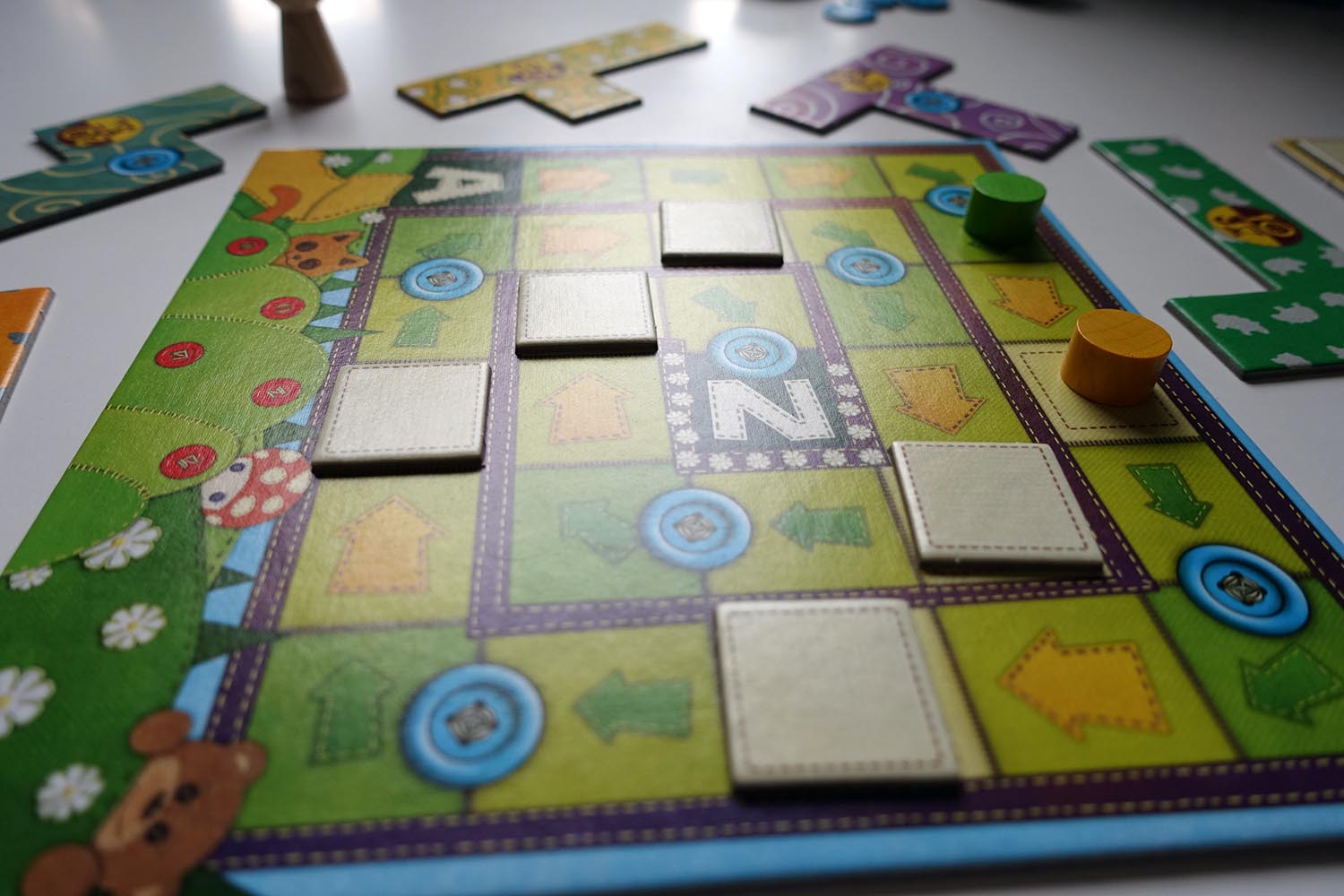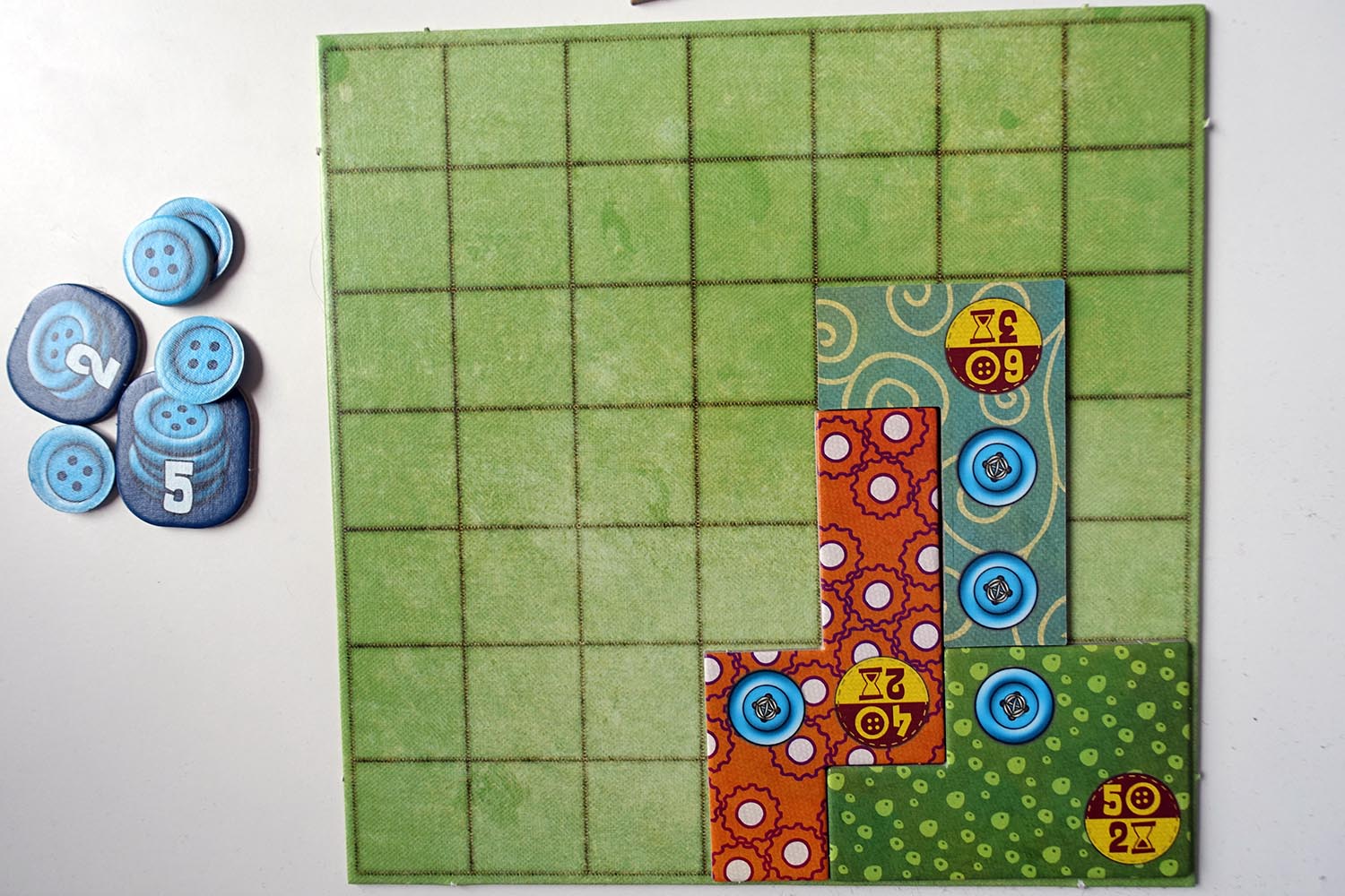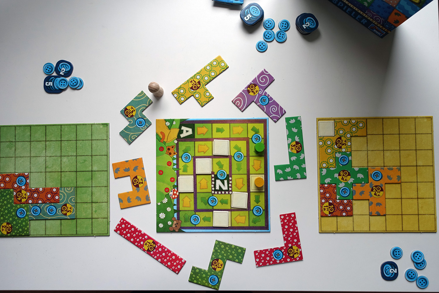 und bringt stattdessen ein ebenso eingängiges wie unterhaltsames Legespiel auf den Wohnzimmertisch. Eine Partie der diesjährigen Neuauflage dauert rund 20 Minuten und beschäftigt mit seiner simplen Mechanik und handlichen Materialien zwei Spieler ab 6 Jahren. Was sich hinter dem Flickenteppich verbirgt, wie damit gespielt wird und wer an diesem Spiel besonders Spaß hat, verrate ich im nachfolgenden Test.