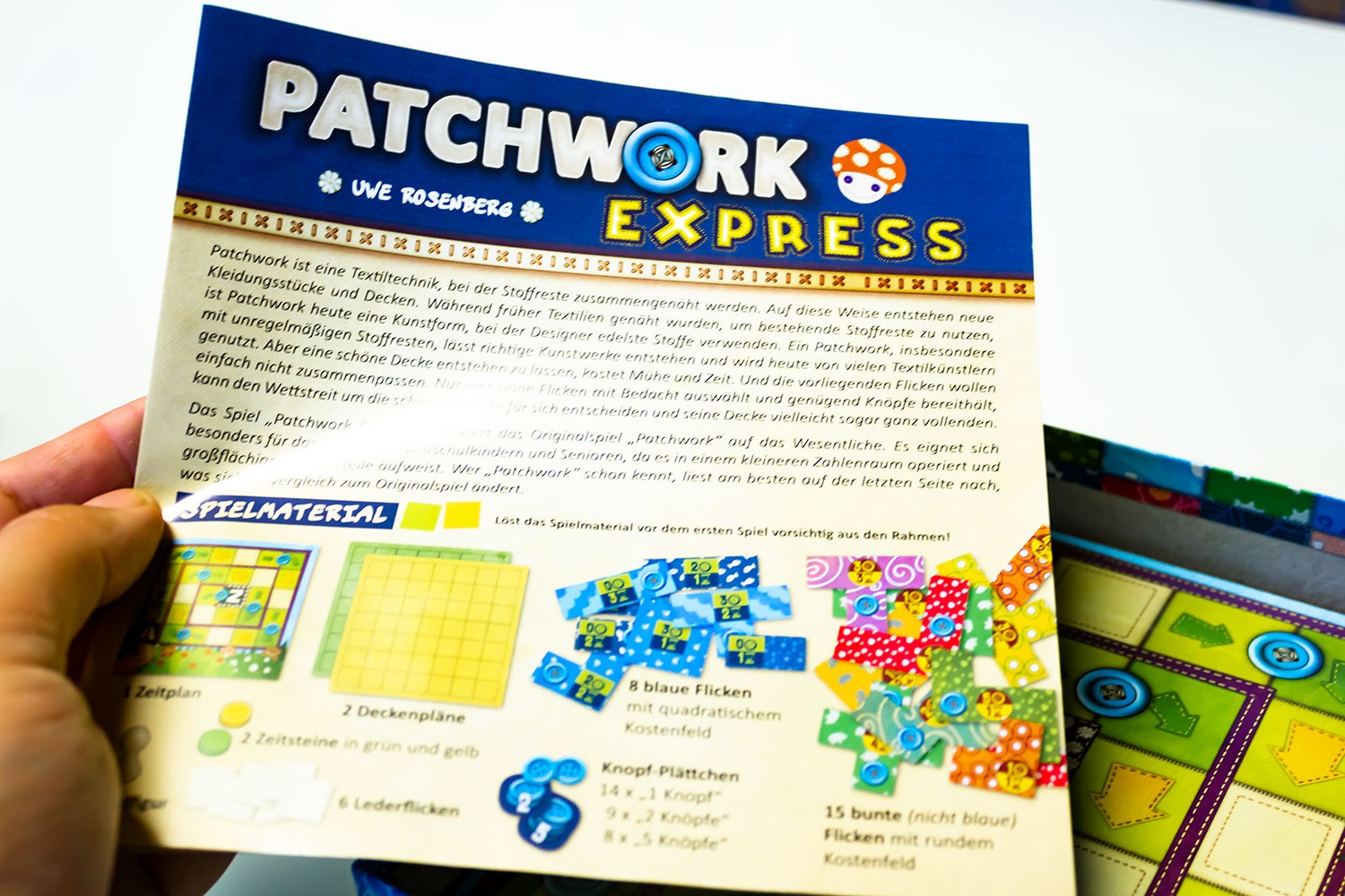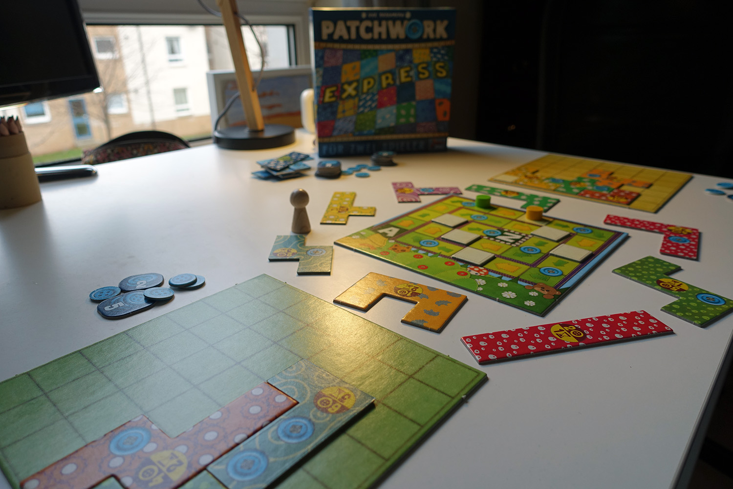 Naja… Nicht wörtlich und auch nicht einmal im übertragenen Sinne. Wie unpassend formuliert von mir… Patchwork: Express, die aufs Wesentliche reduzierte Variante von Uwe Rosenbergs Erfolgsspiel Patchwork aus dem Jahr 2014, kommt nämlich ohne viel Hektik und Konflikte aus
