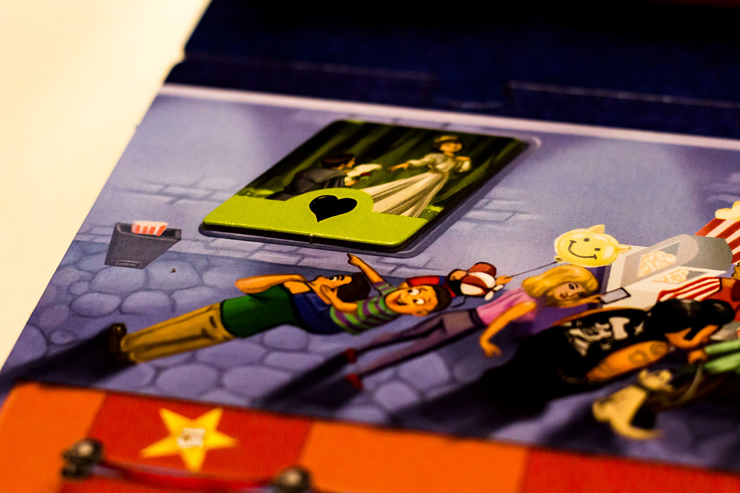 „Showtime“ hat mich überrascht. Durch das puzzelbare Spielbrett, kommt ein eindrucksvoller Spielplan auf den Tisch, auf dem die abgelegten Karten locker ihren Platz finden. Auch der teils platte Humor spricht mich deutlich an. Was könnte „Ken Krawall“ anderes machen, als andere Personen von einem Sitz zu vertreiben? Die Grafik ist passend geraten und witzig. Dem kostenlosen Exemplar, dass wir erhalten haben lag noch ein Promo-Set von vier Karten bei. Diese sehen durchweg witzig aus und erweitern die Möglichkeiten. Grundsätzlich ist die Optik von den Karten und dem Spielmaterial sehr gelungen und hat einen freundlichen Stil. Die Symbole sind übersichtlich und könen nach den ersten Runden verstanden werden. Zum Start ist es jedoch etwas verwirrend, was welches Symbol bedeuten soll.