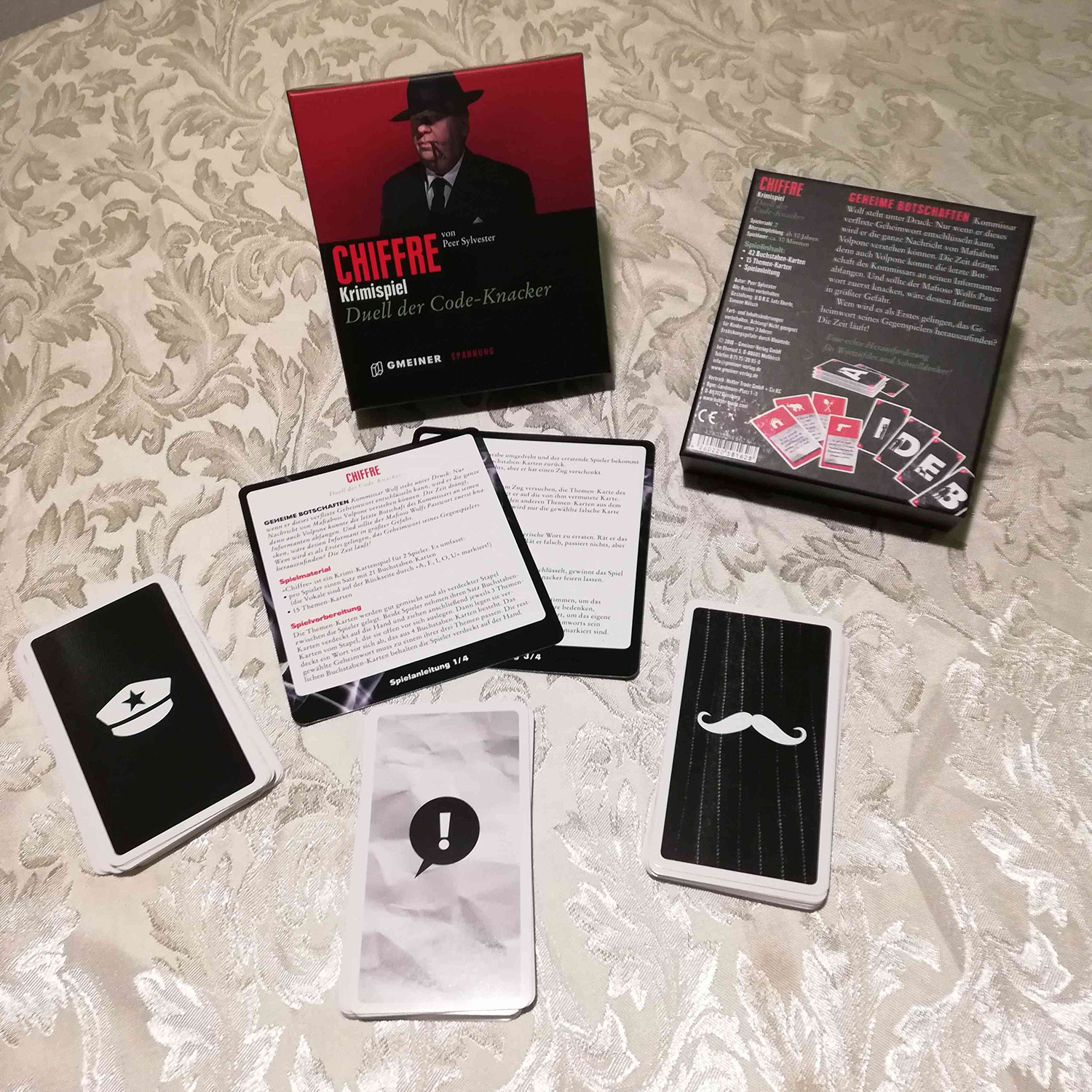 Ein Kommissar, der das Geheimwort des berüchtigten Mafiabosses knacken muss. Und auf der anderen Seite eben jener Mafiaboss, der den Code des Kommissars entschlüsseln will, um den Informanten zu enttarnen. Das ist die Aufgabe der beiden Spieler in Peer Sylvesters Chiffre - Duell der Code-Knacker
