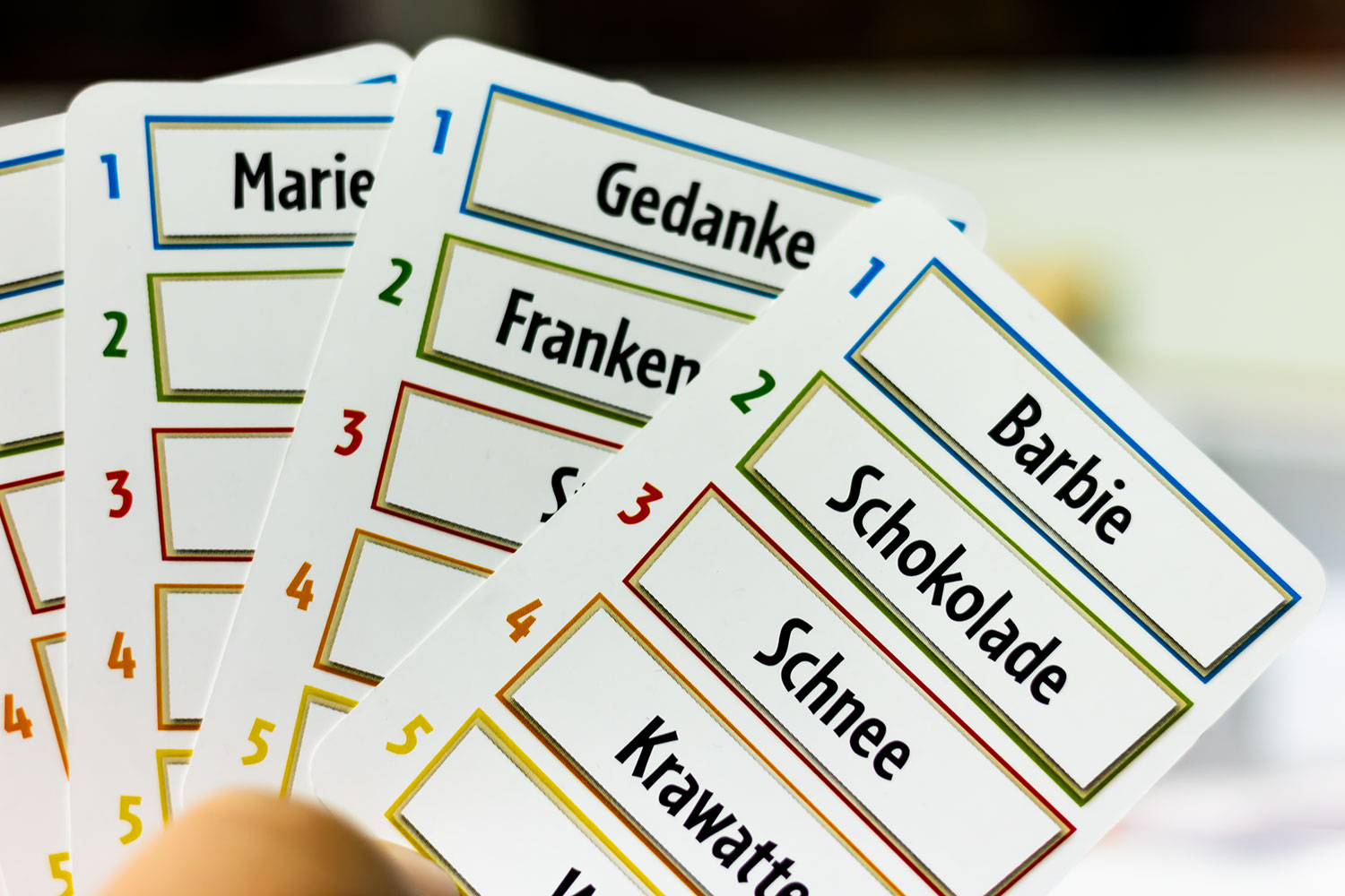 Das Wort wird verdeckt aufgeschrieben. Sind alle Spieler fertig, schließt der aktive Spieler seine Augen und wartet, bis die Mitspieler ihre Wörter abgeglichen haben. Gleiche Wörter müssen nun entfernt werden. Auch hier gilt, der gleiche Wortstamm oder andere Schreibweise als Doppelung.