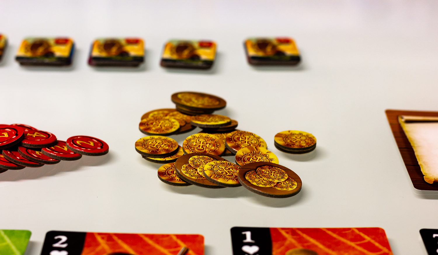 Dublonen- oder Schatzkarten ausspielen und entsprechend Geld nehmen.