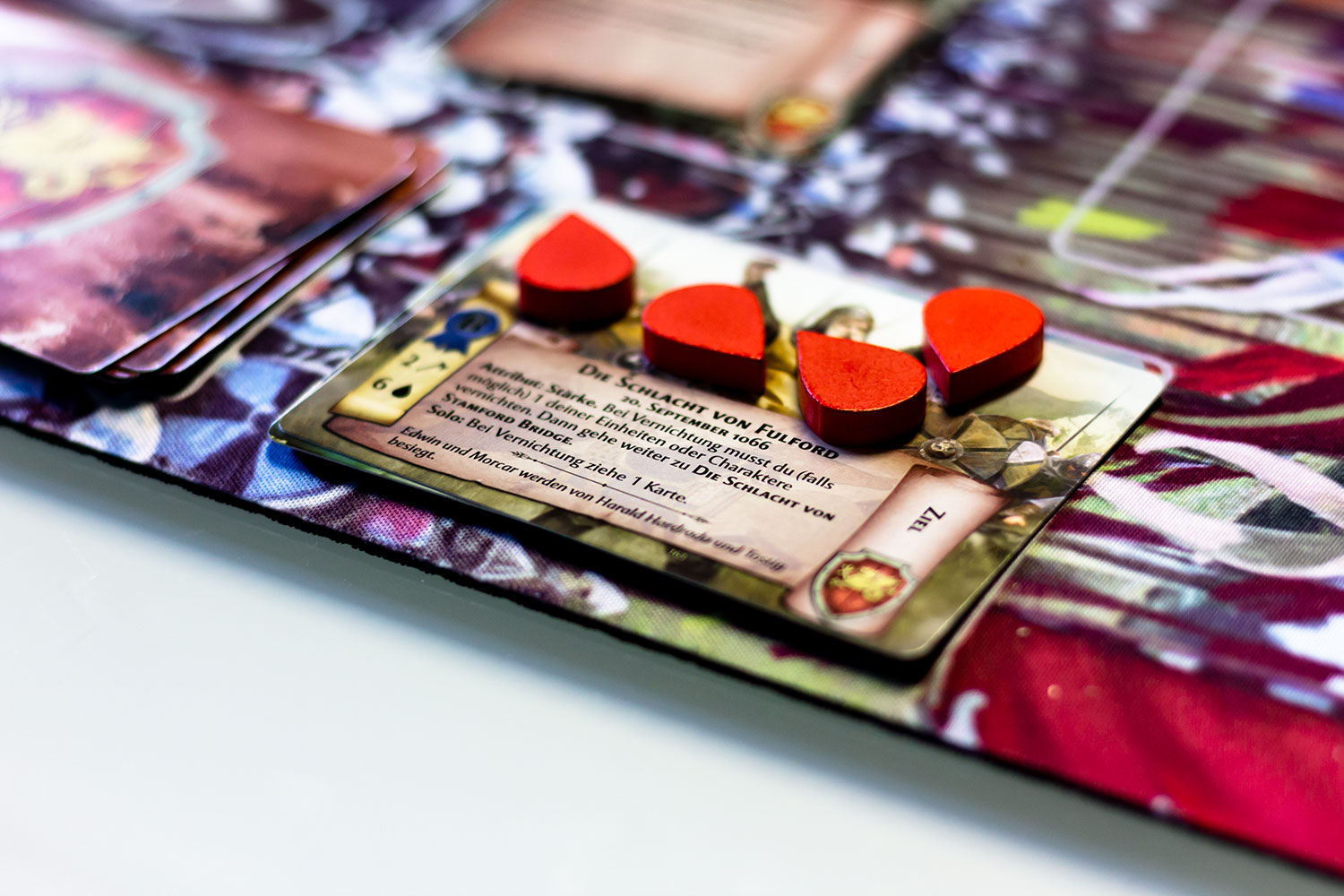 Zudem hat das Spiel einen Spannungsbogen. Die Spieler versuchen schnell die Ziele zu erfüllen, die Schlacht vorzubereiten um dann im Finale um die Keile zu ringen. Das hat bei den Testpartien sehr gut funktioniert und die Schlacht von Hastings war meistens eine spannende Entscheidung, die ganz knapp entschieden wurde.
