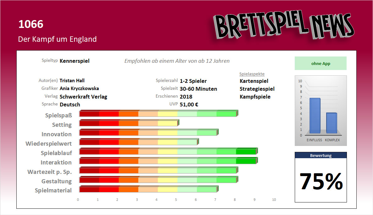 Ich mag Spiele für zwei Spieler und habe mir deswegen auch gezielt 1066 zugelegt. Zusätzlich mag ich auch noch Mittelalter und habe schon zahlreiche Hörbücher und Geschichtstexte zu dem Thema konsumiert. Dementsprechend hat das Spiel subjektiv betrachtet einen kleinen Bonus, wobei dass nicht dazu führen würde, dass ich ein Spiel nur wegen dem Setting mag und über alles andere hinwegsehen kann.