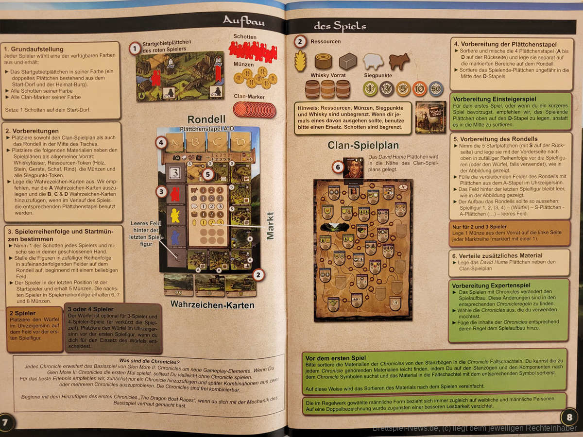 Zudem hat die gespielte Chronicle Spaß bereitet und sich sinnvoll in das Spiel eingefügt. Zum einen bleibt das Gefühl, Glen More auf dem Tisch zu haben, zum anderen hat sich richtig viel getan. Die vielen Jahre der Entwicklung zahlen sich hier offensichtlich positiv aus. Wir waren mit zwei Spielern, die das erste Glen More kennen am Tisch und zwei, die es noch nicht gespielt hatten. Allen hat es Spaß gemacht. Optisch war es noch ausbaufähig, was bei einem Prototypen kein Wunder zu sein scheint. Erste Bilder des finalen Material waren hingegen mehr als vielversprechend. Der Verlag will hier nicht kleckern, sondern klotzen!