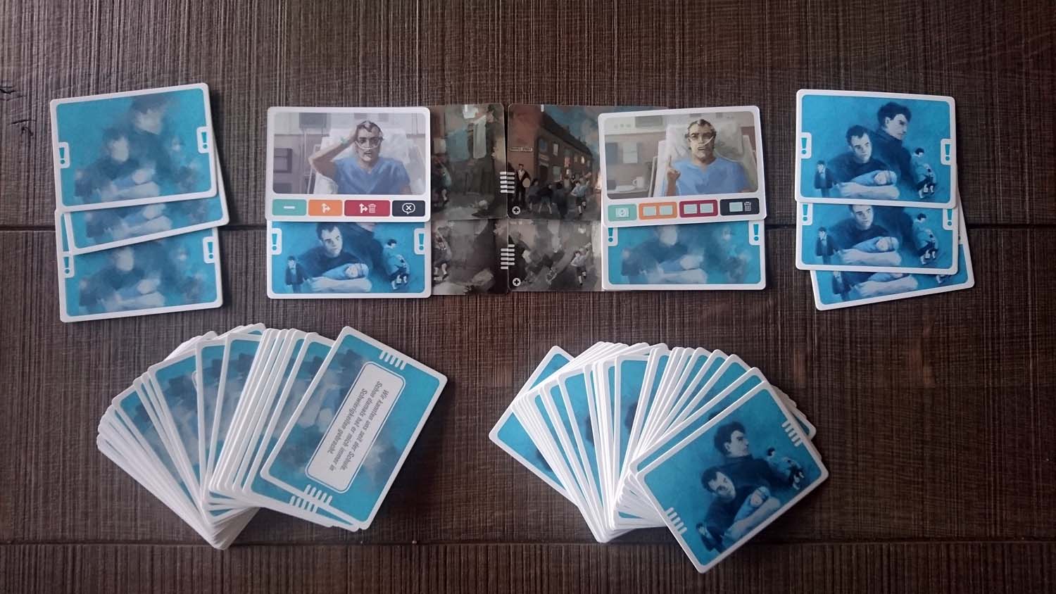 Als durch die fragwürdige Taktik mehr Erinnerungskarten reinkamen, gab es dann das nächste Problem. Es wurden zwar immer wieder vage Erinnerungen eingesammelt und es wurden Versorgungsmarker ausgegeben, um daraus klare Erinnerungen zu machen, nur leider kam es viel zu oft vor, dass diese nicht passten und die klaren Erinnerungen wieder ins Deck zurück gemischt werden mussten. Nicht nur, dass es zu oft vorkam, dass wir klare Erinnerungen nicht auslegen konnten, kamen auch regelmäßig Zwischenfälle beim Ziehen von Erinnerungen auf. Diese sind Teil der beiden Stapel mit Erinnerungen und rufen Komplikationen hervor. Und umso leerer das Deck wird, umso wahrscheinlicher werden Zwischenfälle. Der Glücksfaktor beim Spiel ist immens hoch. Das beginnt beim Ziehen der Patientenkarten, bei denen negative Effekte komplett blockieren können. Es geht weiter beim Ziehen aus den Erinnerungsstapeln, bei denen Zwischenfälle nicht nur neue Erinnerungen verhindern, sondern zudem auch noch für weitere Probleme sorgen. Und zu guter Letzt benötig man auch immer wieder Glück, dass die klaren Erinnerungen auf der Hand mit einer vagen Erinnerung im Raster übereinstimmen, weil sie anderenfalls wieder zurück gemischt und somit erneut erarbeitet werden müssen.