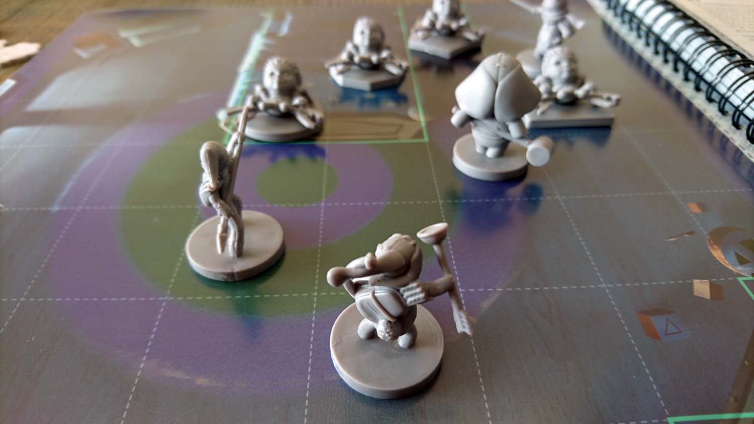 Das Spielmaterial macht einen sehr guten Eindruck. Vor allem das umfangreiche Abenteuerbuch im Ringbuchformat mit seinen stabilen Seiten sticht gleich äußerst positiv ins Auge. Die Zeichnungen sind wunderbar anzusehen und machen es sehr leicht, in die Spielwelt einzutauchen. Die Miniaturen tragen ihren Teil dazu bei, da sie nicht nur stabil sind, sondern zudem auch liebevoll und detailvoll gestaltet wurden. Die Heldentafeln fallen für meinen Geschmack ein wenig zu dünn aus und hätten gerne aus etwas festerem Material sein dürfen.